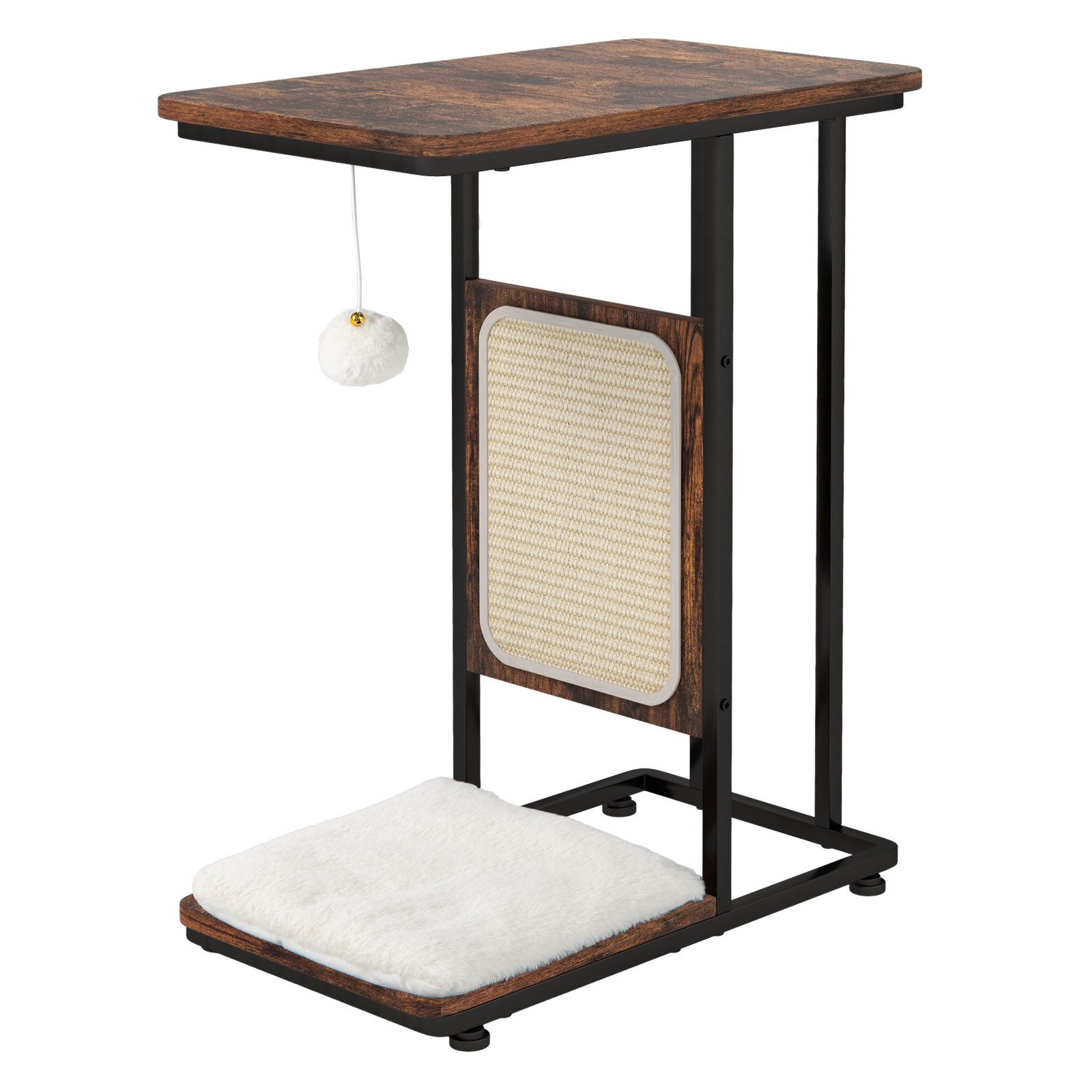 Das 4-in-1-Katzenmöbel bietet Platz für Ihre täglichen Gegenstände und bietet gleichzeitig endlosen Spaß für Kätzchen. Ihre Haustiere werden es lieben, auf dem weichen und fusselfreien Kissen ein Nickerchen zu machen, das zur einfachen Reinigung abnehmbar und waschbar ist. Darüber hinaus ist das abnehmbare und maschinenwaschbare Kissen eine ideale Wahl, um übermäßige Katzenhaare auf Ihren Möbeln zu reduzieren. Haben Sie sich schon einmal darüber geärgert, dass eine Katze Ihre Möbel zerkratzt hat? Das möbelschonende Kratzbrett ist ideal für Katzen zum Krallenschleifen. Danach sind Ihre Möbel weniger anfällig für Kratzer. Und der hängende Plüschball ist ein Spielpartner für das Kätzchen. Unser Kratzbaum und Beistelltisch mit massivem Metallgestell bietet eine stabile Struktur. Zudem gibt es rutschfeste Protektoren zum Schutz Ihres Bodens. Der kleine Katzen-Beistelltisch verfügt über ein platzsparendes C-förmiges Design, wodurch er für jede Ecke Ihres Wohn- und Schlafzimmers geeignet ist.