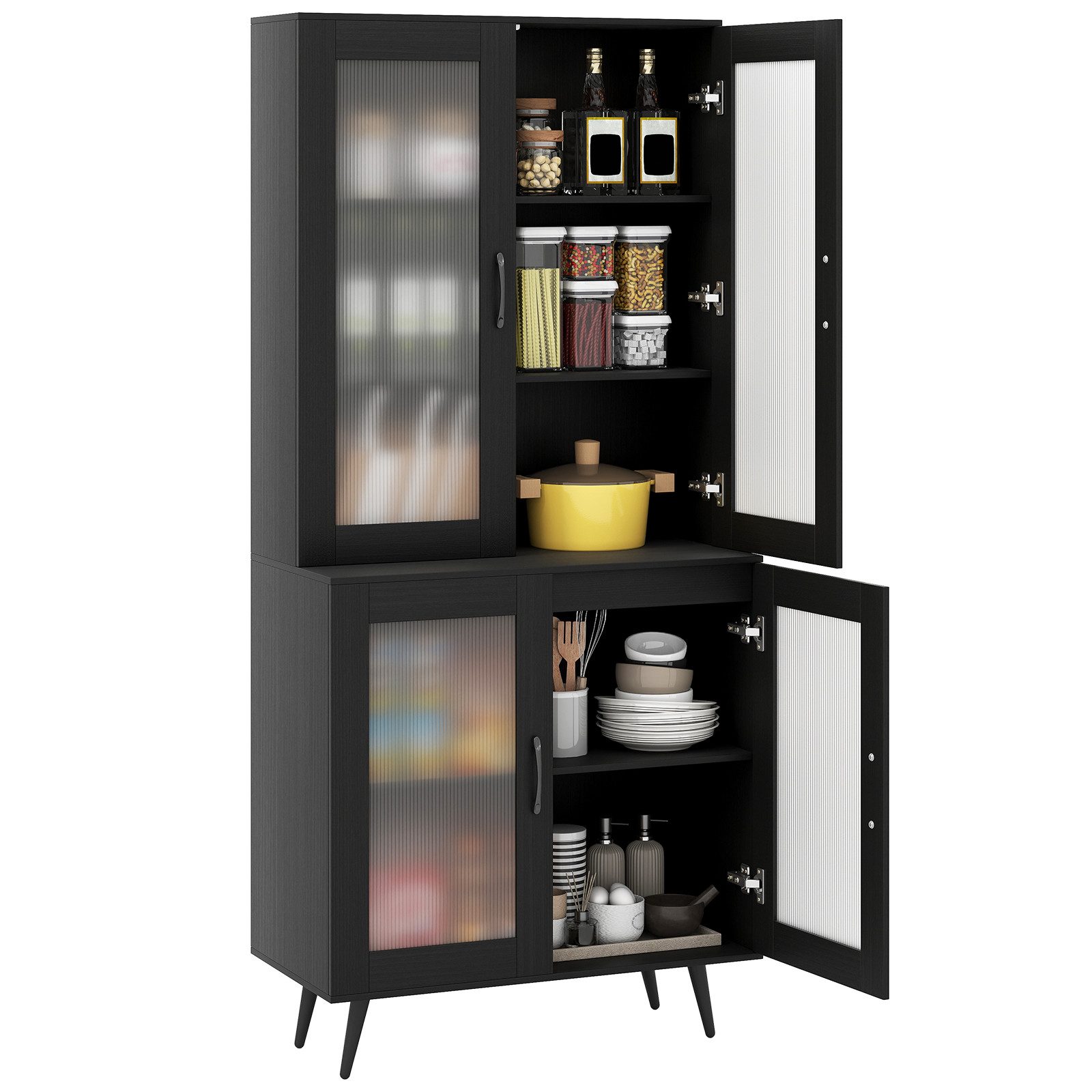Das Buffet-Sideboard verfügt über 4 durchsichtige Türen, die eine leichtere Ansicht und Organisation der Gegenstände ermöglichen, während sie Ihrem Raum einen Hauch von Eleganz verleihen. Der untere Abschnitt des Schranks enthält ein verstellbares Regal, das in 5 verschiedene Höhen eingestellt werden kann, um Ihre Aufbewahrungsbedürfnisse zu personalisieren. Auf stabilen, erhöhten Metallbeinen positioniert, überzeugt dieser hohe Schrank durch eine zuverlässige Struktur.