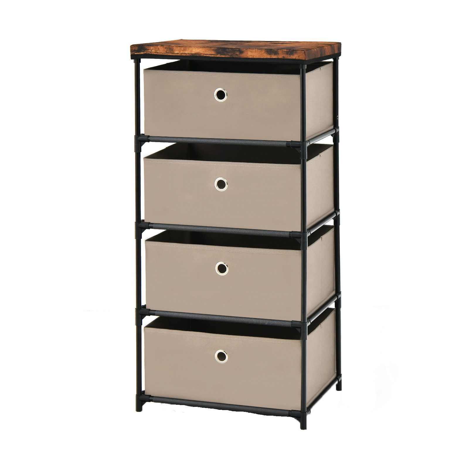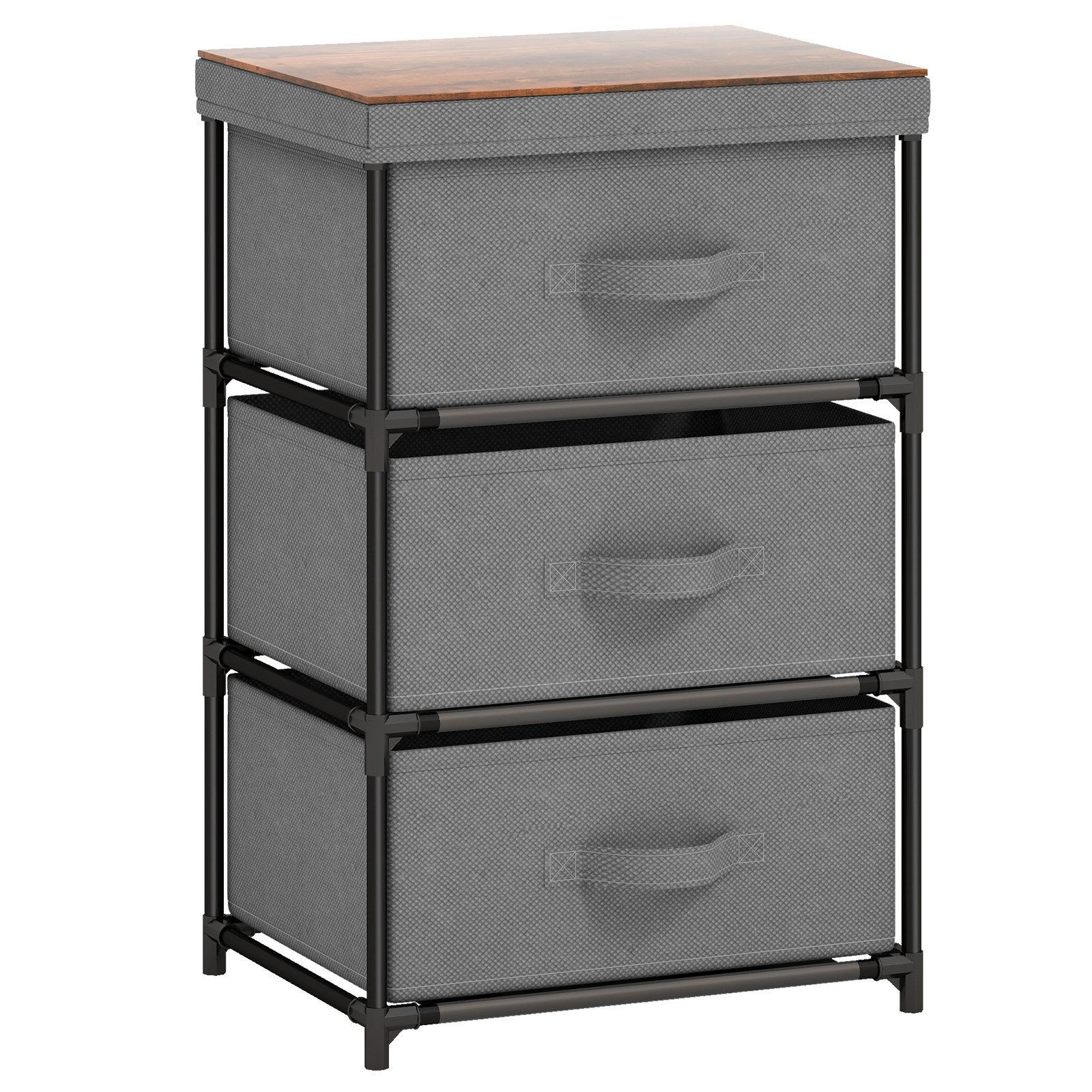 Diese Aufbewahrungsschubladen-Einheit wird Ihre Lebensqualität erheblich verbessern und Ihre Zimmer frei von Unordnung halten. 3 Schubladen und eine breite Oberfläche bieten viel Stauraum für Kleidung, Brillen, Lampen, Bücher und andere Gegenstände. Der stabile Metallrahmen bietet zuverlässige Unterstützung. Die aus Non-Woven gefertigten Schubladen sind nicht nur einfach zu falten, sondern auch widerstandsfähig gegen Abnutzung und eignen sich somit perfekt für den Langzeiteinsatz. Es besteht kein Zweifel daran, dass dieser Schubladen-Turm ideal für Schlafzimmer, Wohnzimmer, Flure und kleine Apartments ist. Mit einem so praktischen Organizer zur Hand, worauf warten Sie noch? Bestellen Sie jetzt!