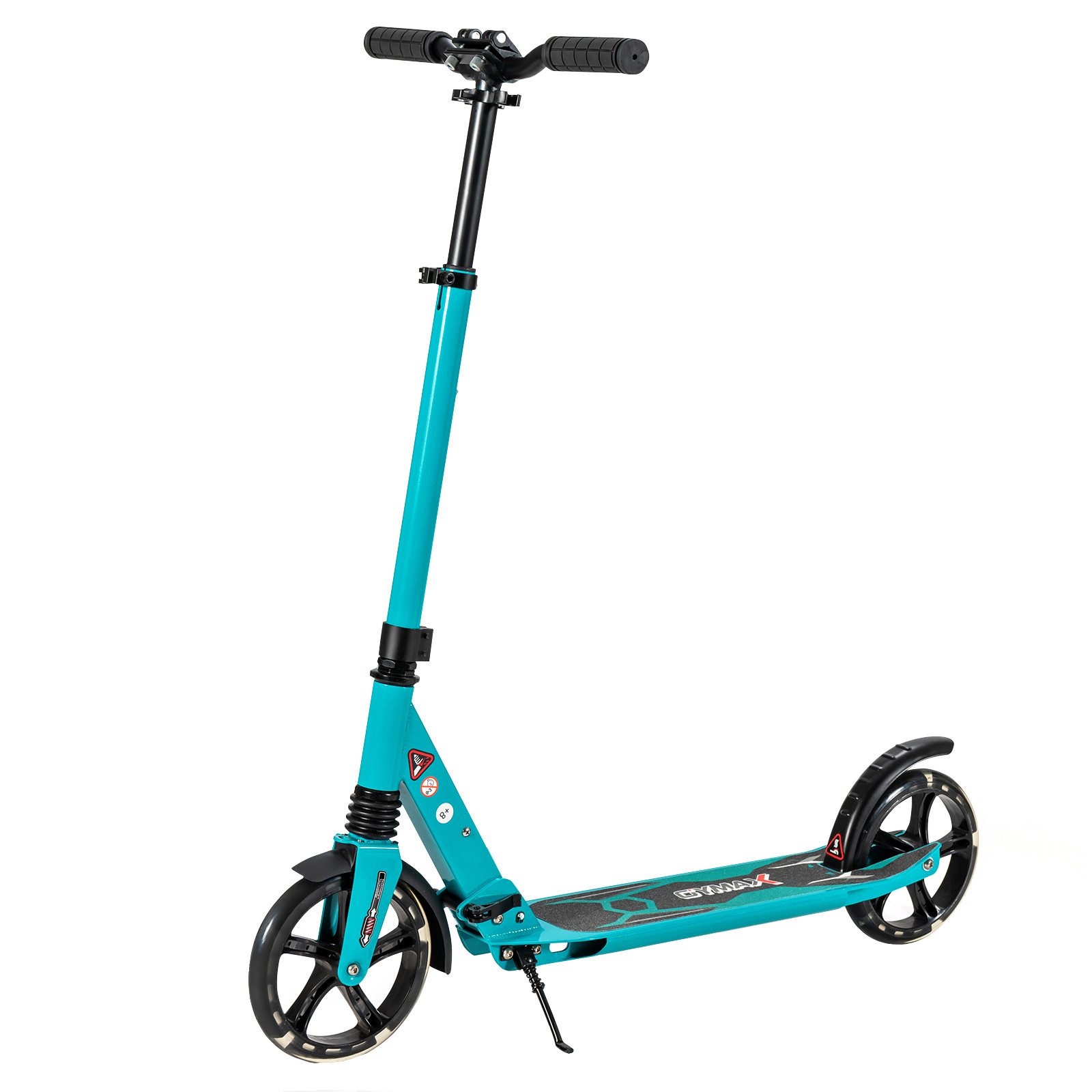 Unser Scooter ist eine ideale Wahl für alle, die täglich eine gewisse Strecke zurücklegen und sich dabei beschäftigen möchten. Er eignet sich für Nutzer ab 8 Jahren und kann dank seines höhenverstellbaren T-Griffs an verschiedene Körpergrößen angepasst werden. Durch die robuste Aluminiumlegierung wird langfristig eine hohe Tragkraft von 100 gewährleistet.Die PU-Räder sind zudem lautlos, stoßdämpfend und lassen sich auf allen möglichen Untergründen verwenden. Der praktische Scooter ist auch sehr komfortabel!Während der Benutzung leuchten zudem die bewegungsaktivierten LED-Lichter auf. Durch den Ständer kann der Scooter sicher abgestellt werden, außerdem lässt er sich bei Nichtgebrauch zusammenklappen und platzsparend verstauen. Dank dem Schultergurt ist auch der Transport sehr einfach.