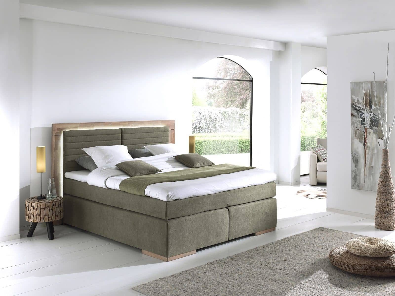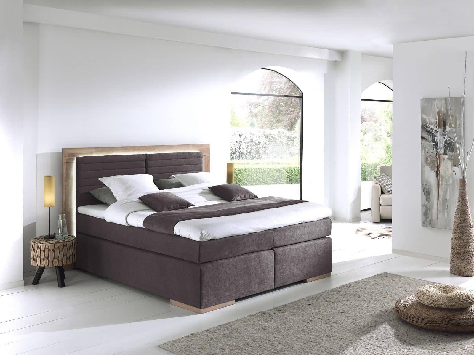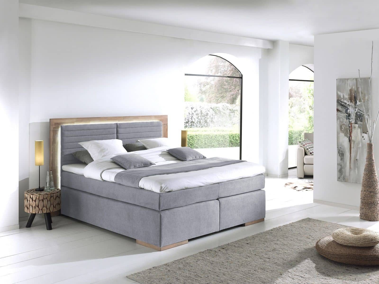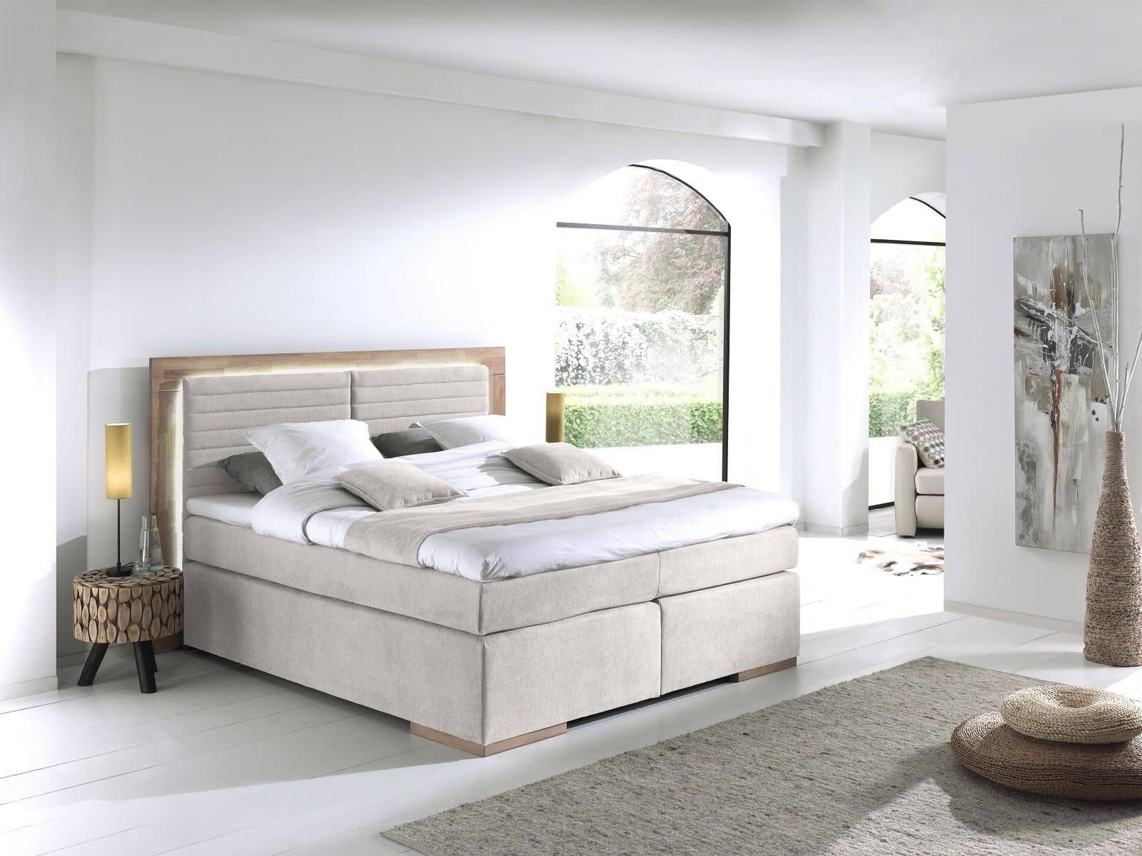 Ausstattung | LED-Kopfteilbeleuchtung Premium Basic Topper (5 cm, RG 25) Möbelstoff „New York“ 7-Zonen-Taschenfederkern Matratze 5-Gang-Bonellfederkern Unterbox |