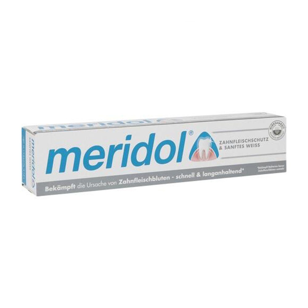 meridol® SANFTES WEISS ist eine Zahnpasta, die gleichzeitig zuverlässig Plaquereste entfernt und zusätzlich auf sanfte Weise für weiße Zähne sorgt.
