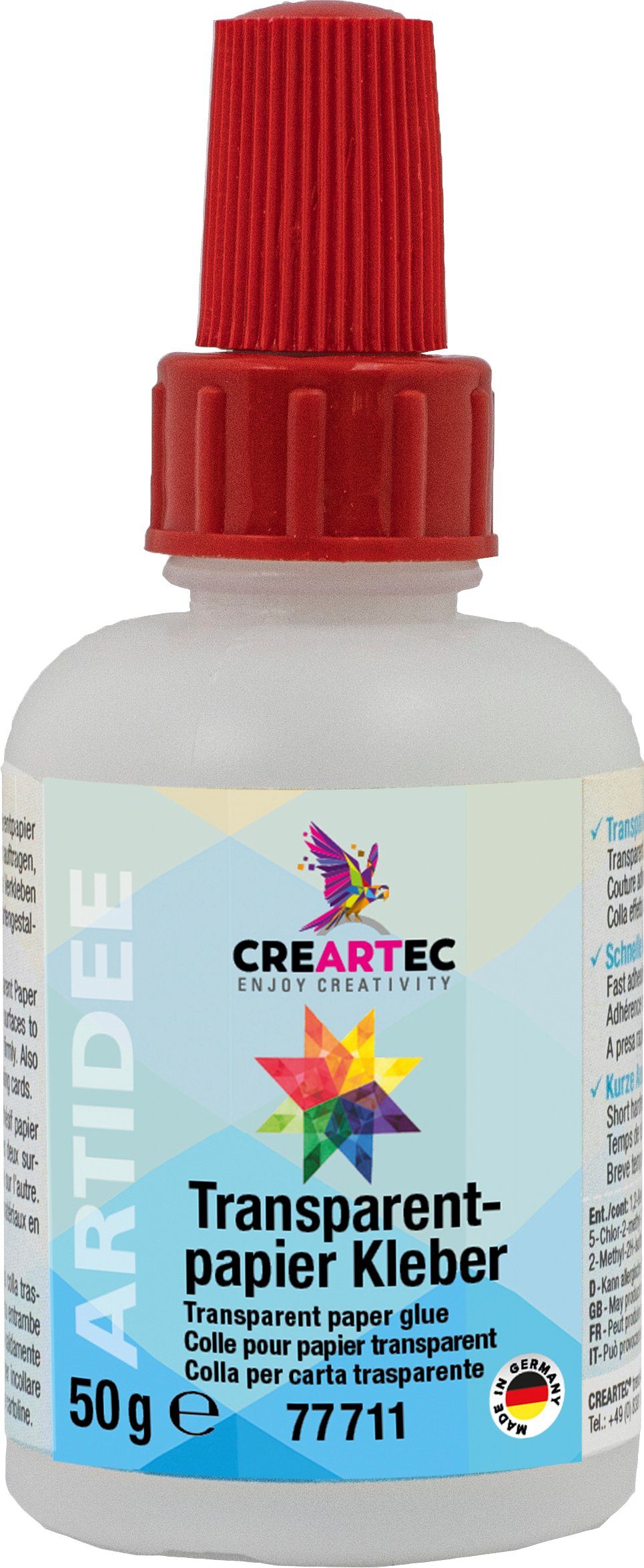 Mit dem Transparentpapierkleber schaffst du saubere Bastelprojekte ohne sichtbare Klebespuren. Dieser spezielle Flüssigkleber, hergestellt in Deutschland, eignet sich ideal für Transparent- und Krepppapier und trocknet transparent auf. Perfekt für kreative Karten und Fenster-Dekorationen. Du kannst den Kleber einfach mit der Linerflasche auf Pappe oder Karton auftragen. Mit einem Gewicht von 50 g ist er handlich und ergiebig. Gestalte deine Papierkreationen ganz nach deinen Vorstellungen, ohne störenden Kleberückstand. Egal, ob du Anfänger oder erfahrener Bastler bist, dieser Kleber erleichtert das Basteln ungemein. Lass deiner Kreativität freien Lauf!