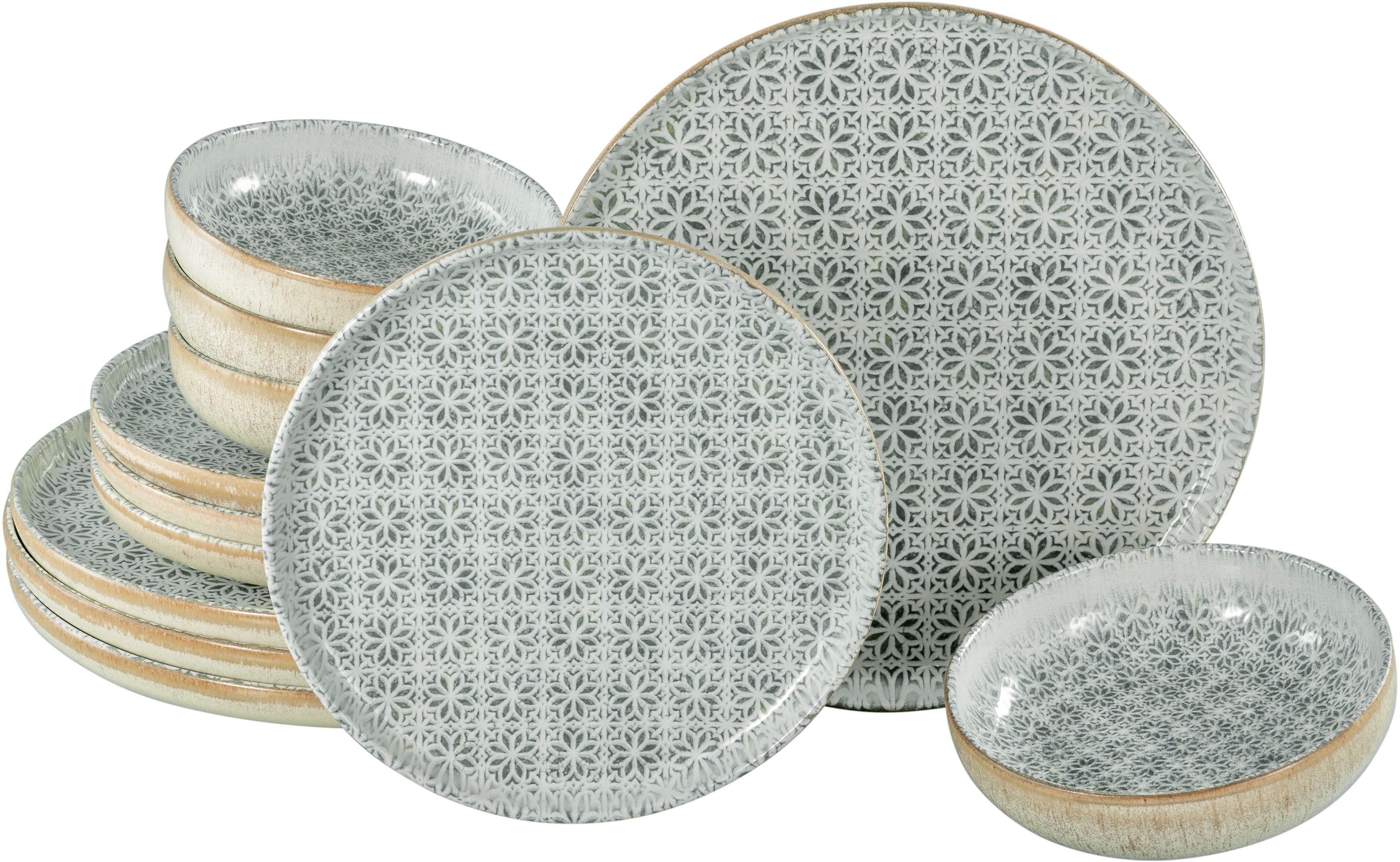 EDLES TELLERSET: 12 einzigartige Stücke warten darauf, deinen Tisch zu schmücken. Das Set beinhaltet 4 Speiseteller (Ø 28 cm), 4 Dessertteller (Ø 22 cm) und 4 Mehrzweckschalen (Ø 16 cm). ORIENTALISCHER GLANZ: Lass dich von der Serie Uno Emiliana verzaubern, die mit ihren orientalischen und mediterranen Fliesenmotiven einen außergewöhnlichen Flair kreiert. SPEZIALGLASUR: Die seidenmatte Oberfläche verleiht der Serie Uno eine markante Optik und unterstreicht ihre puristische, unkomplizierte Ausstrahlung – jedes Stück einzigartig. FREUDE: Das Geschirr begleitet Dich durch den ganzen Tag. Es ist außergewöhnlich lang haltbar und selbstverständlich auch spülmaschinen- und mikrowellengeeignet. MARKENQUALITÄT: Unser Geschirr wird in Deutschland konzipiert und in ausgewählten Premiumfabriken produziert, um Dir die Qualität zu liefern, die Du Dir für Dein Zuhause wünschst. Außerdem ist für Bruchersatz in der Regel zeitnah und jahrelang gesorgt!