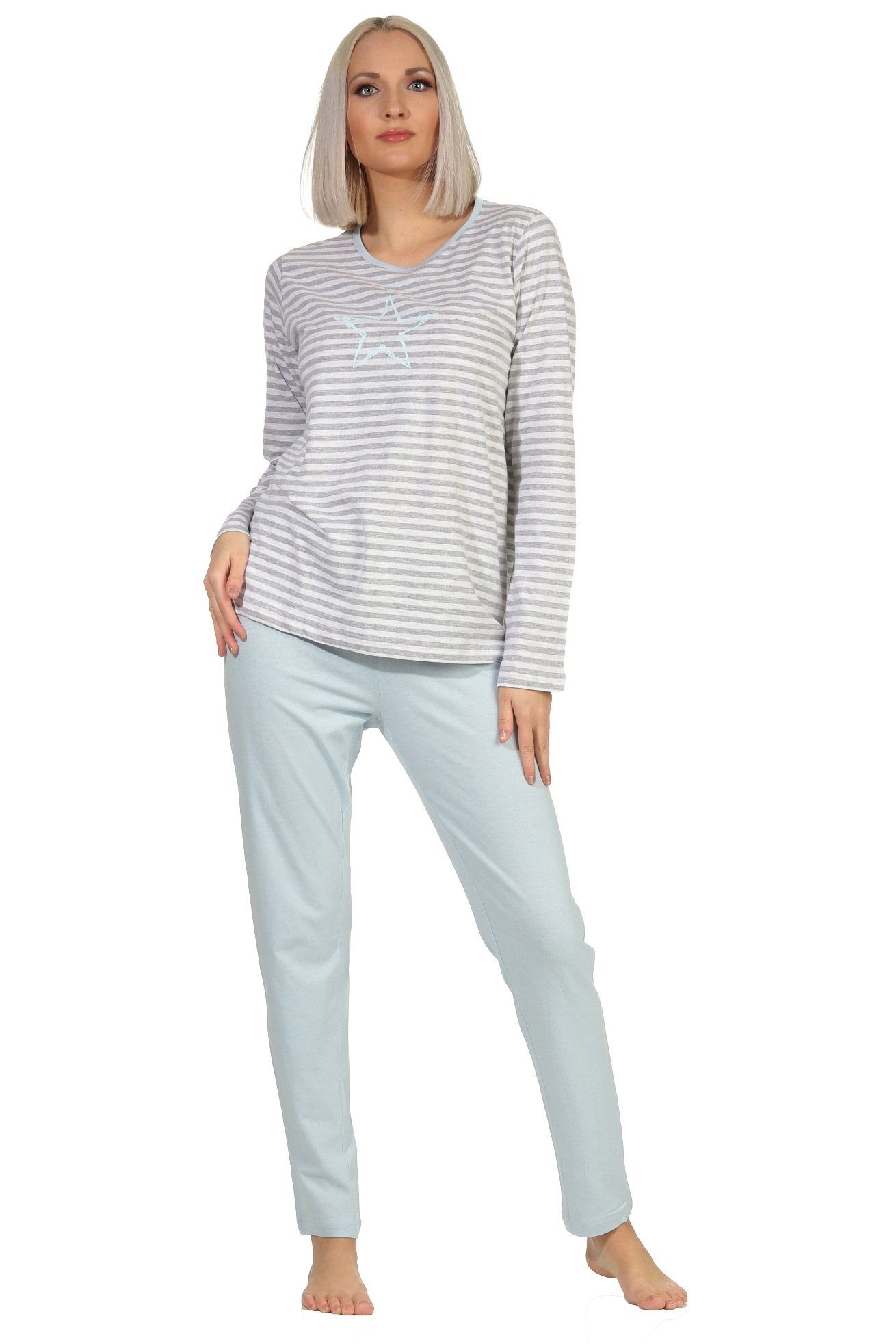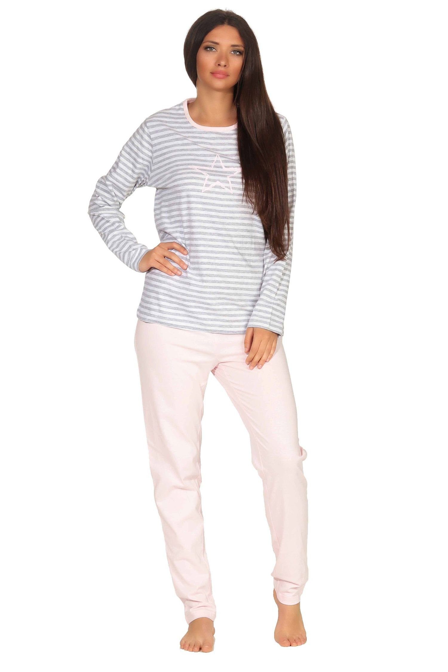 Eleganter Damen Pyjama langarm Schlafanzug - Streifenoptik und Herzmotiv - 102 10 801
