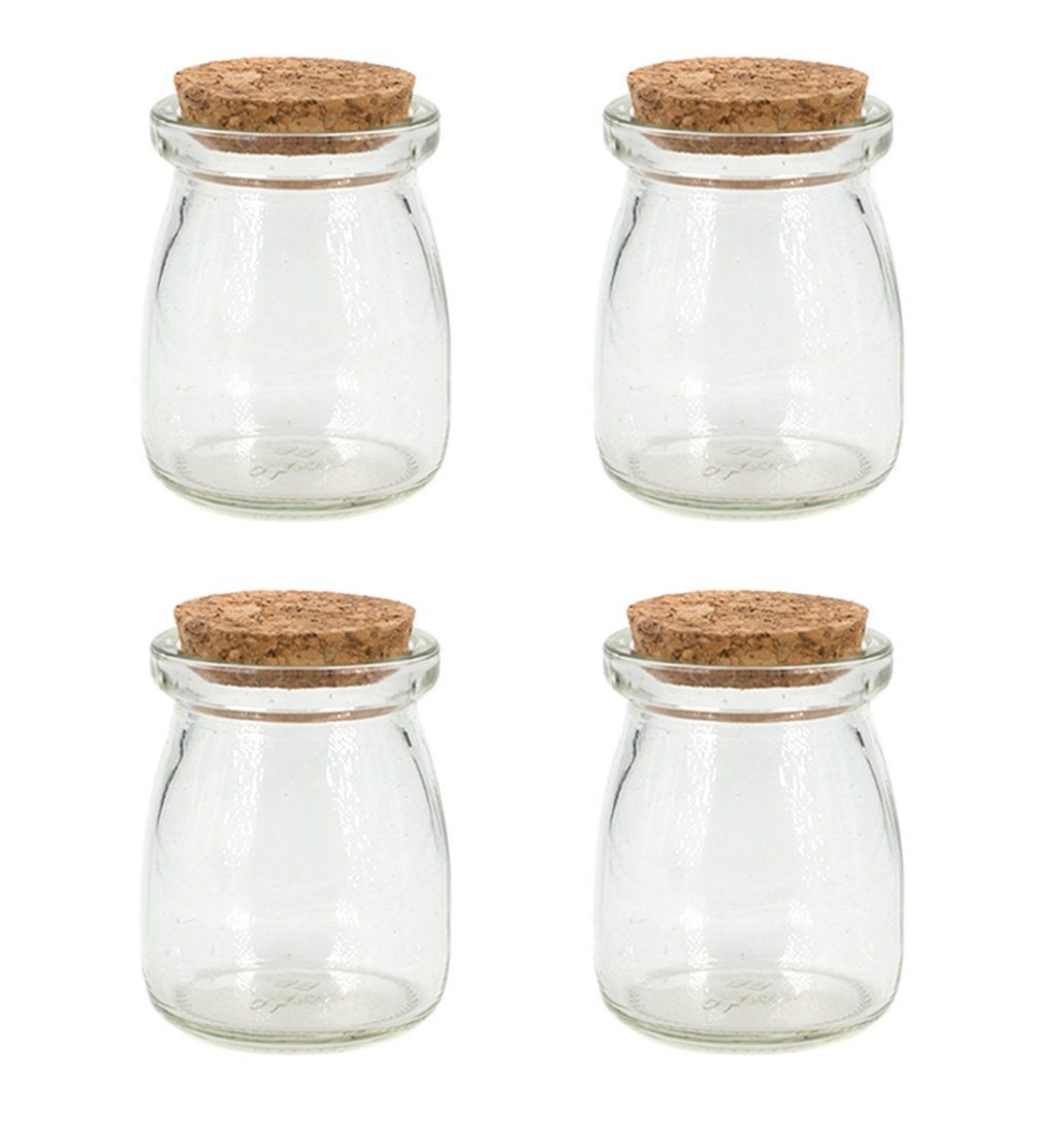 kleine Vorratsgläser aus Glas, durchsichtig, mit Kork Deckel