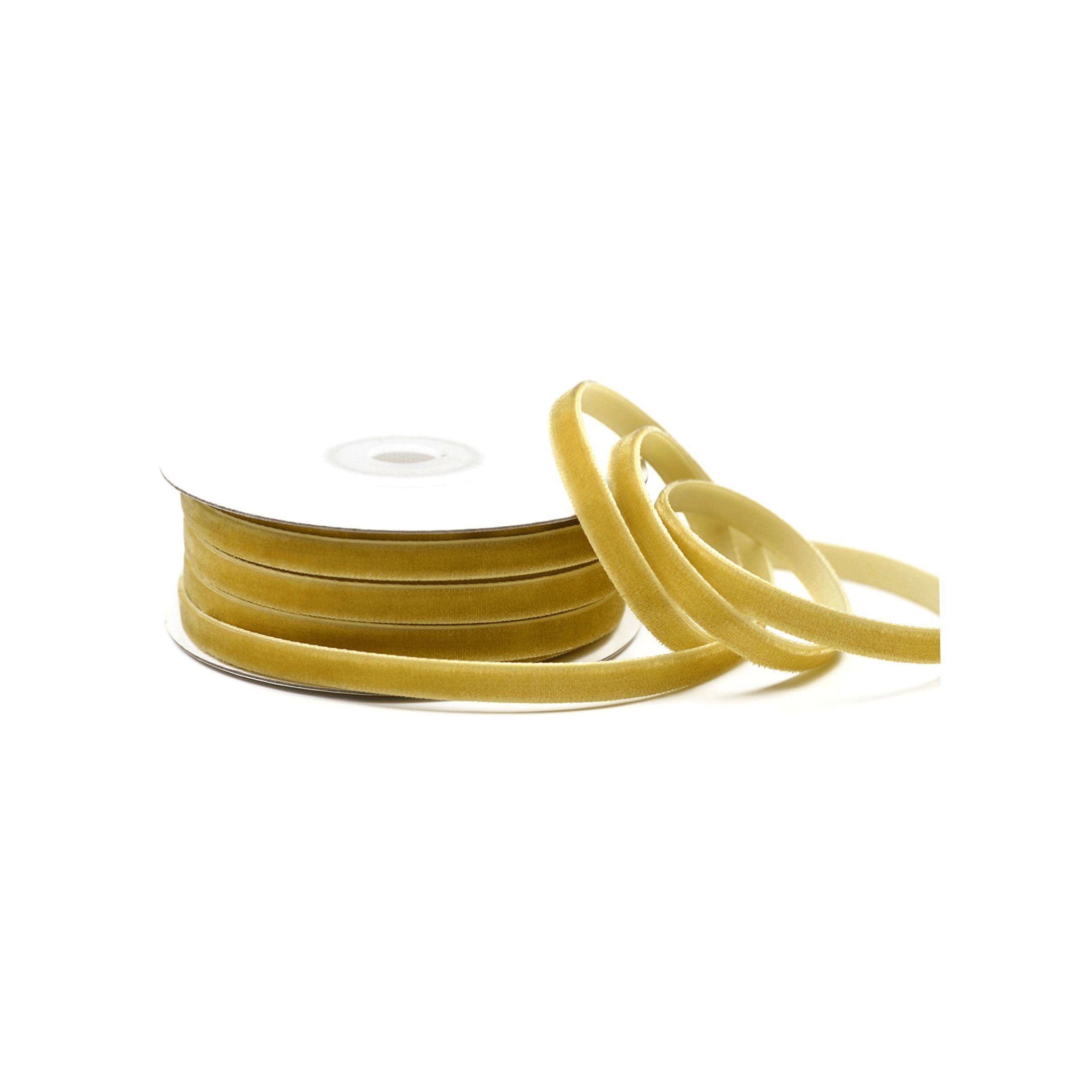 Samtband / Geschenkband / Stoffband / Schleifenband schmal 6mm x 10m auf Rolle Material: Textil, Samt - Stoff, 100% Nylon - Breite des Bandes: 6 mm - Breite des Fadenflores: 5 mm - Inhalt: 10 m auf Rolle - Farbton: gold - goldgelb - Pflegehinweise: waschbar bei 40 Grad, bügelfähig von der Rückseite auf Stufe II, nicht bleichen - mit Webkante, ohne Drahteinlage, von einer Seite flauschig - weich, farbecht, blickdicht, unelastisch, hochwertig - hervorragend zum Basteln, Dekorieren oder zum Nähen von Kleidung und qualitativen Kostümen - stabil, lässt sich auch gut falten, kleben, tackern, binden, nähen Unser schmales, goldenes Samtband eignet sich hervorragend zur Verzierung von Kleidung und beliebigem Textil. Doch nicht nur als Borten und Bänder zum Nähen erweisen sich die Samtbänder. Als Kleid, Korsett oder Dirndl Schnürung setzt das Zierband zauberhafte Akzente. Auch zum Basteln wird einseitiges Dekoband gerne verwendet. Ob Sie nun eine Samt Halskette, Velvet Choker Halsband, Trachten Kropfband, Armband oder Haarband anfertigen möchten - mit diesem Schmuckband kreieren Sie stilvolle Accessoires. Aus dem Velourband lassen sich auch kleine Schleifen binden, um Einladungskarten, Geschenke, den Weihnachtsbaum, die Kirchenbank oder das Hochzeitsauto zu dekorieren. Als Ergänzung Ihrer Osterdeko, Weihnachtsdeko, Geburtstagsdeko oder Hochzeitsdeko unterstützt unser Velvetband das Farbkonzept Ihrer Veranstaltung. Anlässe & Saison: Verlobung, Goldene Hochzeit, 50. Hochzeitstag, Taufe, Kommunion, Konfirmation, Ramadan, Firmung, Abschlussfeier, Piratenparty, Ritterparty, Kindergeburtstag, Geburtstag, Geburtstagsparty, Ostern, Weihnachten, Silvester - Passend zum Thema & Mottoparty: Party mit Motto 20er Jahre, Great Gatsby, Glamour, Mafia & Gangster, Disco, VIP, Stars in Hollywood, Ritter & Prinzessin, Piraten - Stil & Aufmachung: uni & einfarbig, einseitig flauschig - Farbgruppe: gold