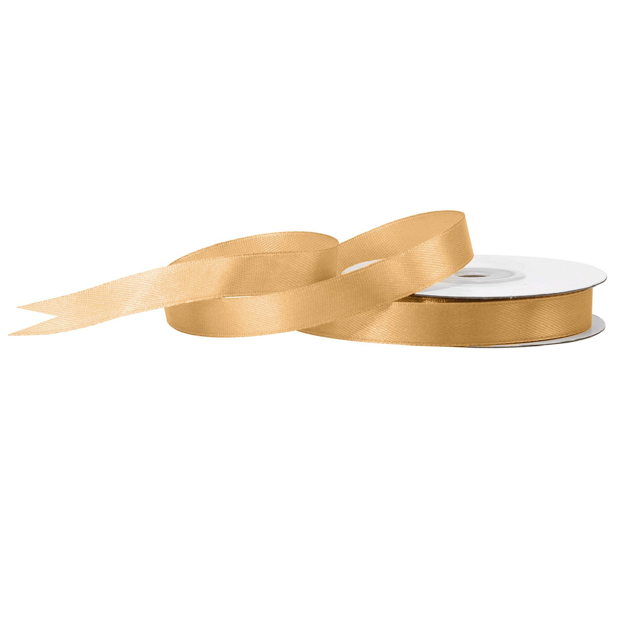 PRODUKT: Satinband 12mm x 25m auf Rolle / MATERIAL: 100% Polyester / FARBTON: hellgold - altgold / PFLEGE: waschbar bei 40 Grad, bügelfähig auf Stufe II, nicht bleichen