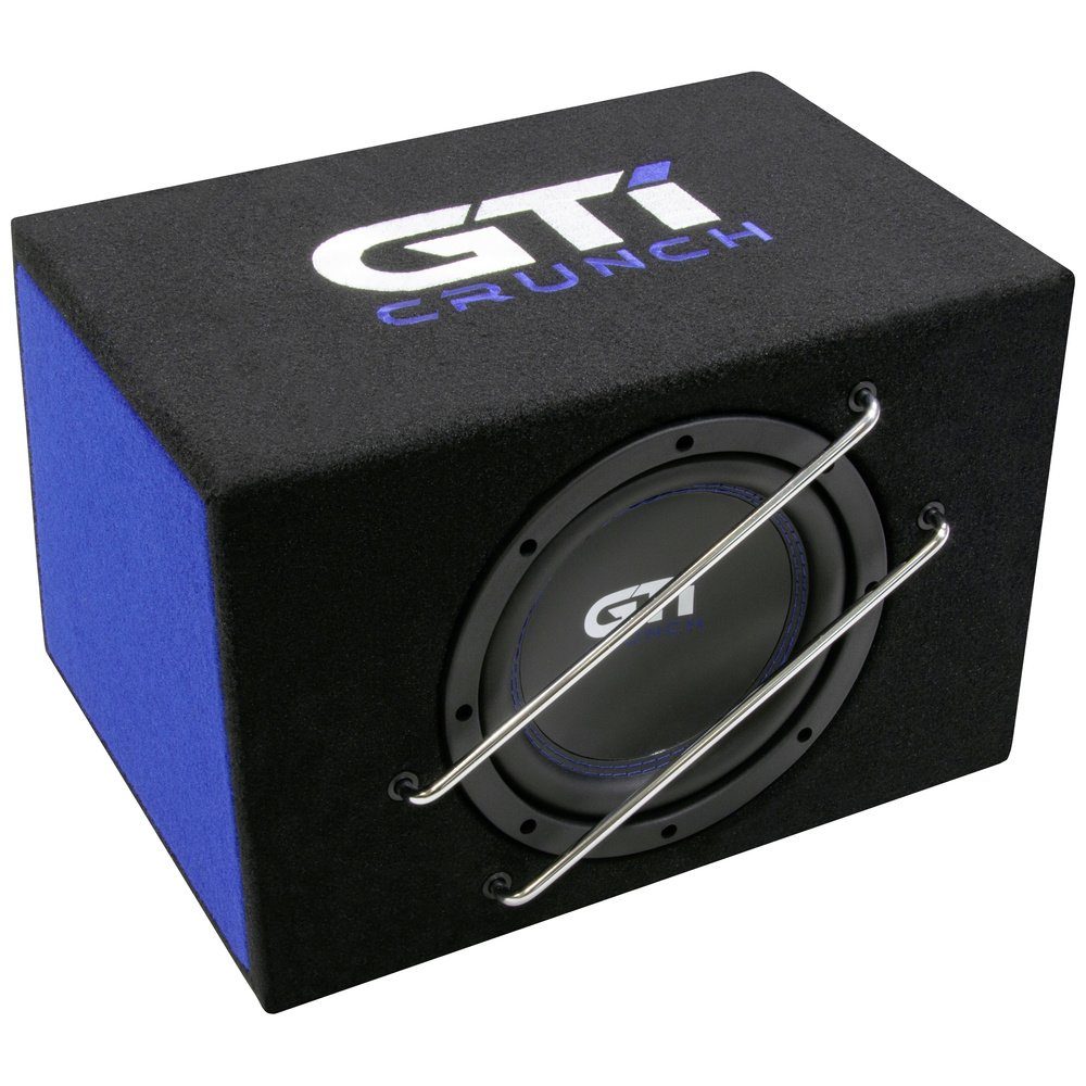 Der kräftige 20 cm (8“) Tieftöner des CRUNCH GTi800A schöpft dank eines vollwertigen 200 Watt RMS leistenden Class A/B Verstärkers aus den Vollen und sorgt für dynamische und tiefe Bässe. Der seitlich integrierte Verstärker verfügt neben den Cinch-Eingängen zusätzlich über High Level Anschlüsse, die mit einer automatischen Einschaltfunktion ausgestattet wurden. So finden auch Autoradios Anschluss, die nur Lautsprecherausgänge besitzen. Dank der Extra-Ausstattung ist die Box besonders gut auch für die Nachrüstung geeignet, wenn an Werksradios Cinch- oder Remote-Anschlüsse fehlen. Das hochwertige, komplett aus MDF gefertigte Gehäuse überzeugt schon beim Anpacken durch ein sattes Gewicht. Sogar die Gehäusefront wurde doppelt ausgeführt, wodurch der Woofer bündig eingelassen werden konnte