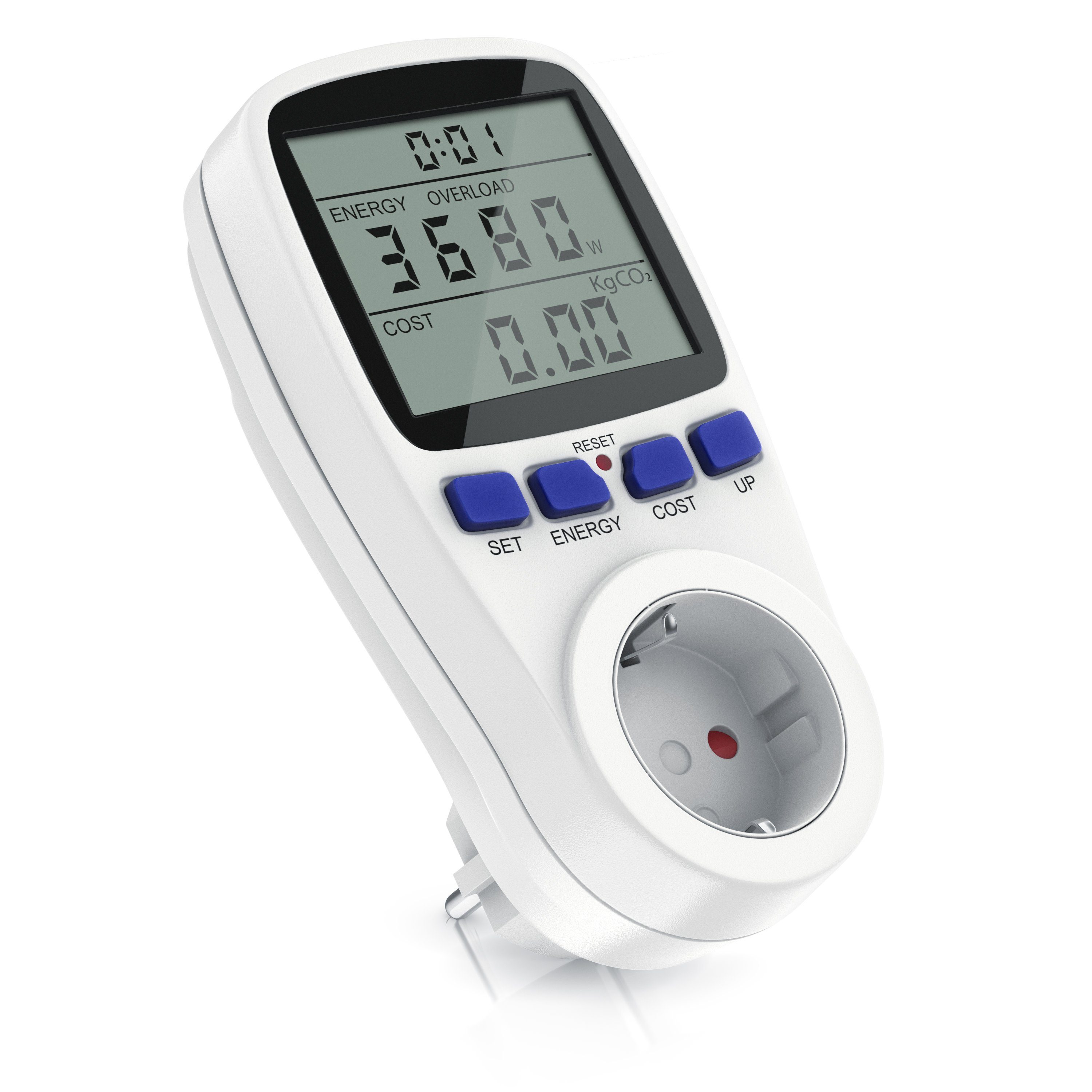 Der Stromzähler für die Steckdose überwacht Ihren Stromverbrauch in Echtzeit. Entdecken Sie Ihr Potenzial zum Energie und Geld einsparen. Das Energiekostenmessgerät liefert Ihnen die entscheidenden Daten. Einfach den Strompreis eingeben und den Verbraucher ins Messgerät einstecken. Sofort zeigt das Gerät den aktuellen Energieverbrauch, berechnet die Stromkosten, die Kohlendioxidemissionen und vieles mehr.