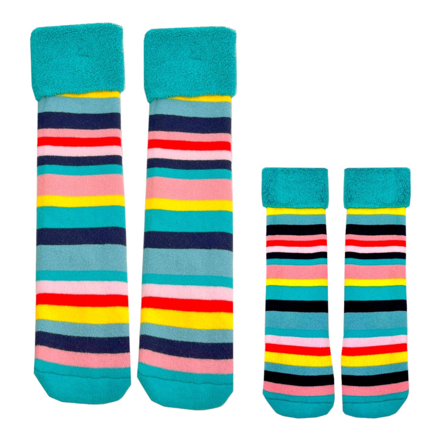 1x Bunte Streifen Socken Cucamelon Kuschelsocken für Mama und Kind in 38-40 & 1-4 Jahre im 2er Set.