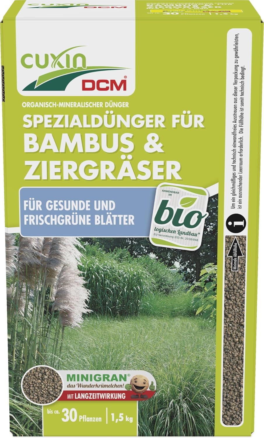 Gebrauchsanweisung | CUXIN DCM SPEZIALDÜNGER FÜR BAMBUS & ZIERGRÄSER oberflächlich in den Boden einarbeiten. Bei Trockenheit wässern, um die Wirkung zu beschleunigen. Bei der Pflanzung: 100 - 150 g/m2, vor dem Pflanzen einarbeiten Erhaltungs-/Pflegedüngung: 100 g/m2 oder 50 g/Pflanze |