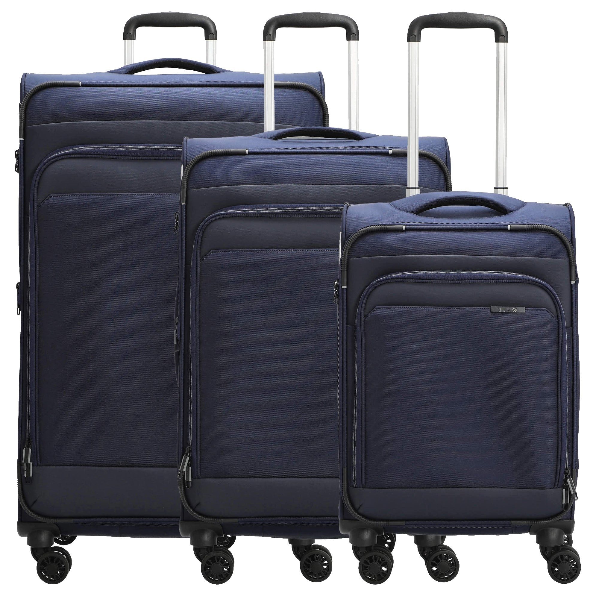 Entdecken Sie die vielseitige D&N Travel Line 9504 in der eleganten Farbe navy, die perfekt für alle Reisenden ist, die Wert auf Stil und Funktionalität legen. Dieses 3-teilige Trolley-Set vereint modernes Design mit praktischen Features und ist ideal für Kurz- und Langreisen. * Robustes Material: Hergestellt aus strapazierfähigem Polyester für Langlebigkeit und Widerstandsfähigkeit. * Erweiterbares Design: Die mittelgroßen und großen Koffer bieten zusätzlichen Stauraum, ideal für alle Ihre Reisebedürfnisse. * Praktische Handgepäckgröße: Der kleine Koffer ist perfekt für die Mitnahme in der Kabine bei den meisten Airlines. Innenausstattung: * Geräumiges Hauptfach: Bietet viel Platz für Ihre Kleidung und Accessoires. * Packgurte: Halten Ihre Kleidung sicher an Ort und Stelle während der Reise. * Reißverschluss-Trennwand: Für eine organisierte Aufbewahrung Ihrer Utensilien. * Praktische Steckfächer: Ideal für kleinere Gegenstände und wichtige Reiseutensilien. Außenmerkmale: * Tragegriffe: Oben und seitlich für eine einfache Handhabung. * Ausziehbares Teleskopgestänge: Für komfortables Ziehen der Trolleys. * Leichtgängige Doppelrollen: Sorgen für müheloses Rollen auf jedem Untergrund. * TSA-Schloss: Gewährleistet die Sicherheit Ihres Gepäcks während der Reise. Das Set umfasst: * L: 76 x 47 x 31 cm / 102 Liter / 3,4 kg * M: 67 x 41 x 27 cm / 67 Liter / 2,8 kg * S: 55 x 35 x 20 cm / 35 Liter / 2,3 kg Mit der D&N Travel Line 9504 in navy sind Sie bestens ausgestattet für Ihre nächsten Abenteuer!
