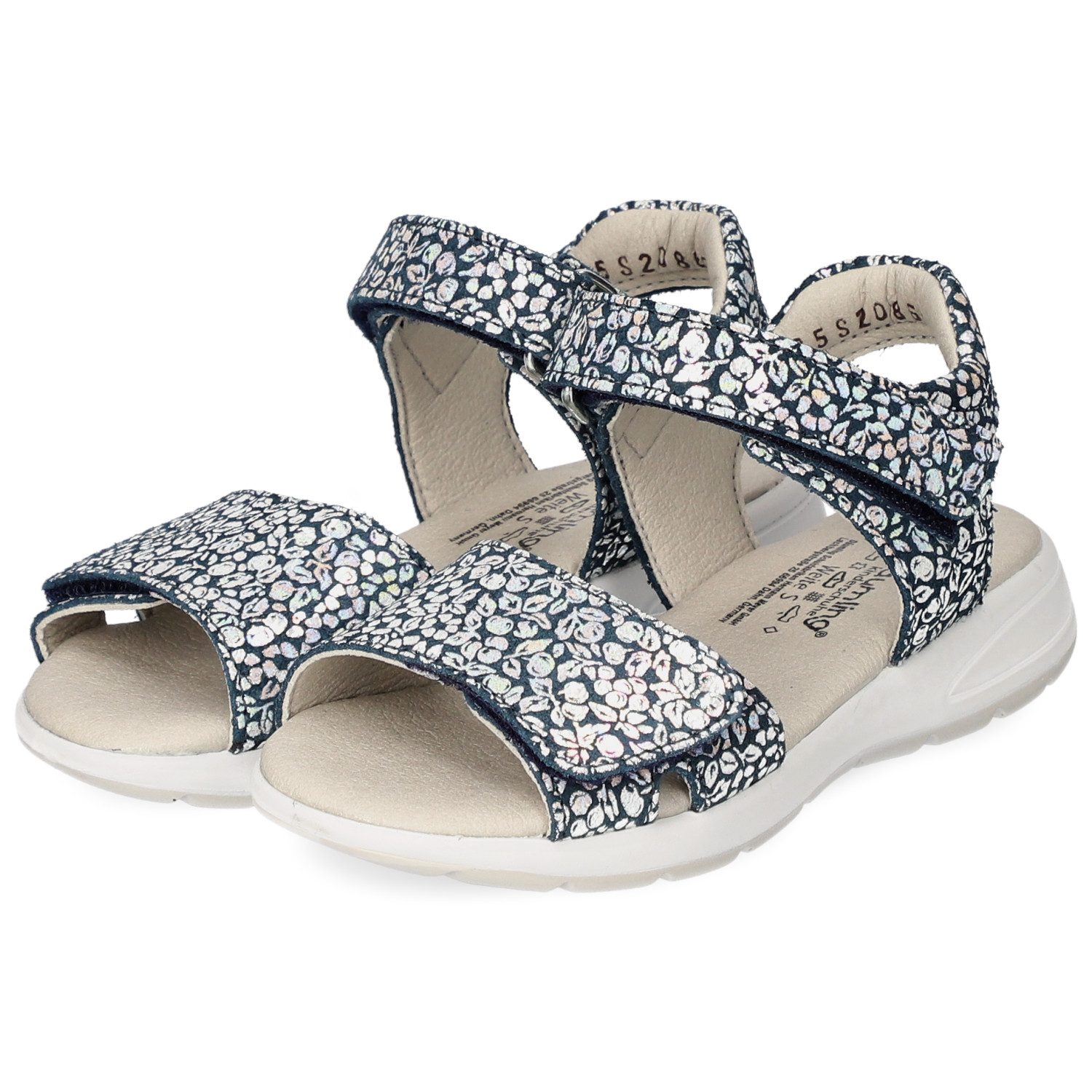 Däumling Mädchen Sandalen CHARLOTTE Blau Leder - 2 praktische Klettverschlüsse - Obermaterial mit Blumenmuster bedruckt - gepolsterter Fersenriemen - komfortabel gepolsterte Decksohle - profilierte Laufsohle mit rutschhemmenden Eigenschaften