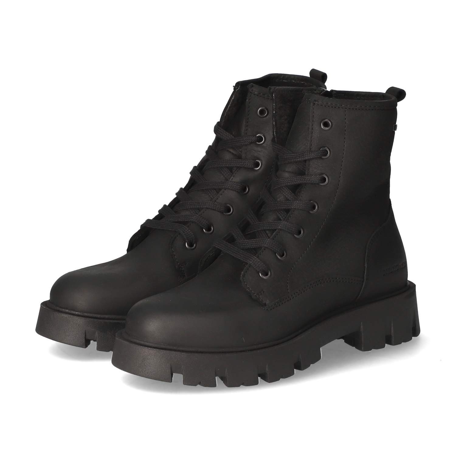 Däumling Mädchen Schnürstiefeletten/ Winterstiefeletten/ Stiefeletten Schwarz Glattleder - wasserfest und atmungsaktiv (TEX) - Reißverschluss und Schnürung - Anziehlasche - warmes Textilfutter - herausnehmbare, gepolsterte Textildecksohle - verstärkte Ferse - flexible und rutschhemmende Profilsohle