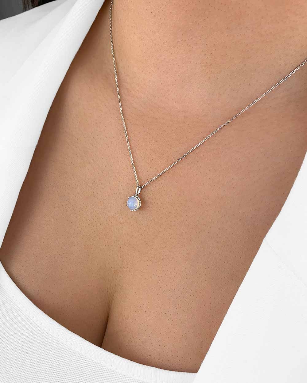 Eigenschaften Anhänger | 925 Sterlingsilber , Zirkonia-Kristall , Mondstein-Glaskugel, Mondstein-Optik, Moonstone-Design |