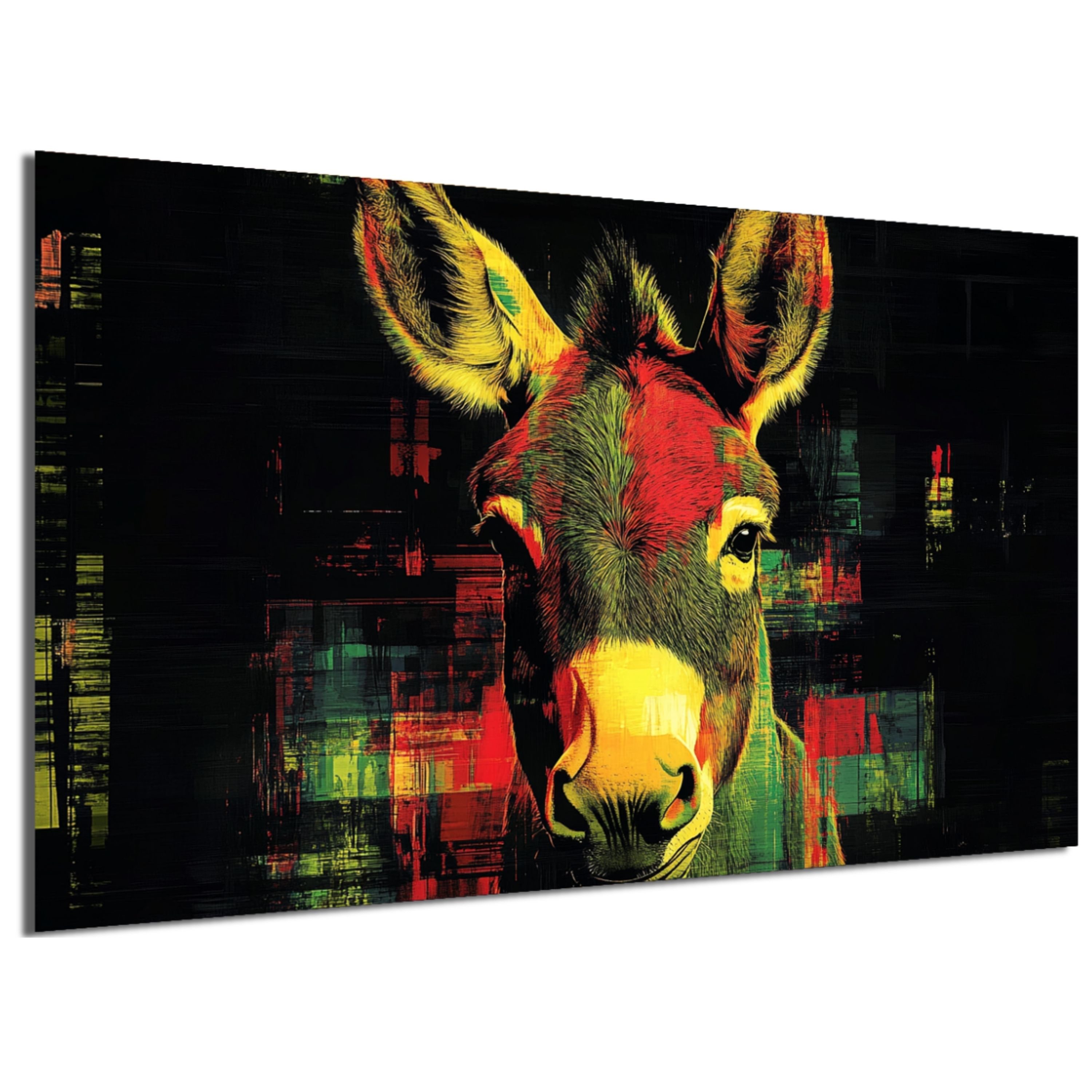 Verleihen Sie Ihrem Zuhause einen Hauch von Extravaganz mit unserem exklusiven Leinwandbild im Warhol-Glitch-Stil. Abstrakte Motive in Schwarz, Weiß und weiteren Farben einen Hauch von Eleganz und Luxus. Dieses außergewöhnliche Wandbild kombiniert abstrakte Tiermotive mit auffälligen Farbakzenten im Warhol-Glitch-Design- ein moderner Kunststil, der klassische Pop-Art-Elemente neu Interpretiert. Ausdrucksstarke Tierporträts treffen auf digitale Verzerrung und kraftvolle Farben und schaffen so eine einzigartige, glamouröse Atmosphäre in jedem Raum.