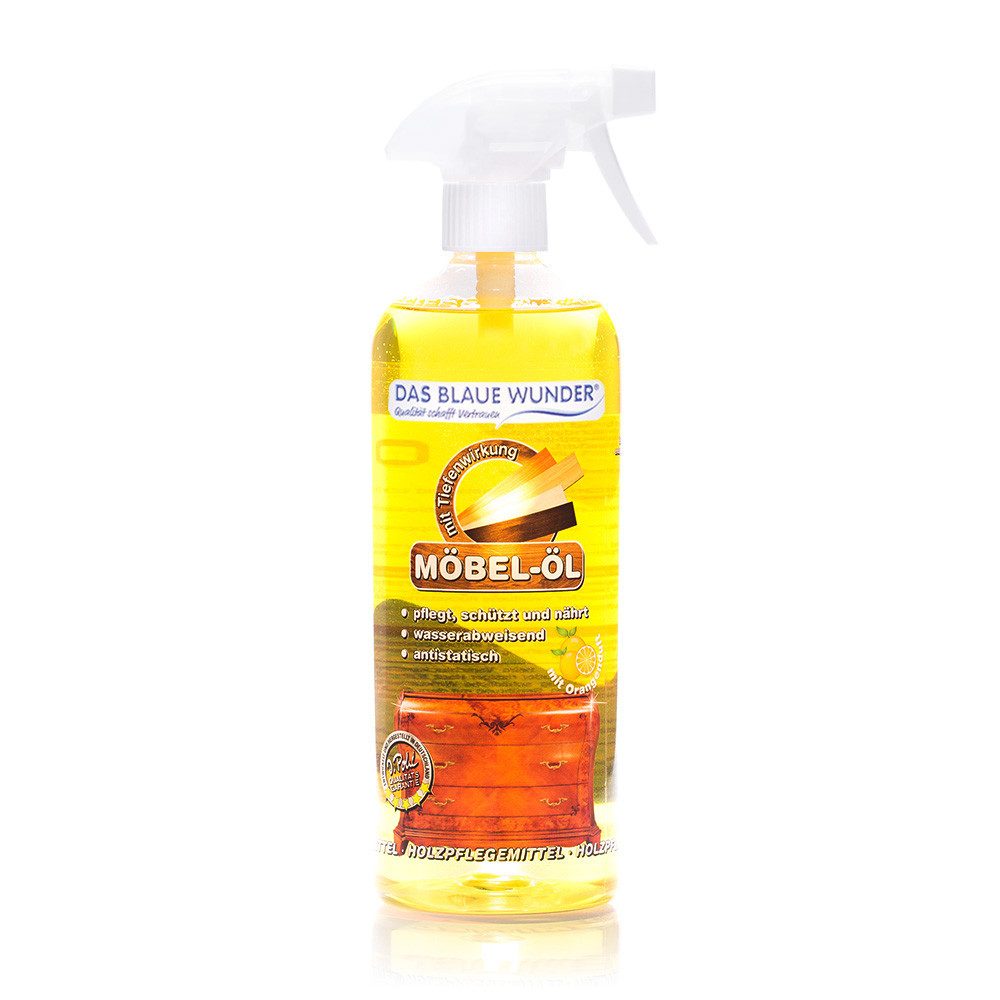 Lieferumfang | 1 x “Das blaue Wunder” Möbelöl (750 ml) 1 x Sprühflasche |