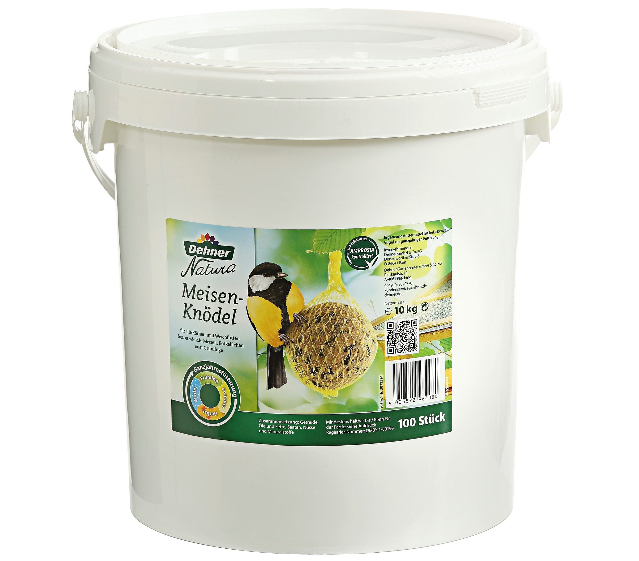 Sicherlich haben Sie es auch schon bemerkt: Mit klassischen Meisenknödeln machen Sie nicht nur die verschiedenen Meisenarten satt und glücklich, sondern auch Grünlinge, Rotkehlchen und andere Weich- und Körnerfresser lassen sich die leckeren und energiereichen Dehner Natura Wildvogelfutter Meisenknödel gerne schmecken. Und geben Ihnen die Gelegenheit, dem munteren Treiben rund um die Futterstelle zu beobachten. Und weil Sie sich entschlossen haben, die heimischen Wildvögel das ganze Jahr zu füttern, können Sie im Sommer auch Vögel aus der Nähe beobachten, die den Winter lieber im Süden verbringen. Wer außerdem noch eine Nisthilfe im Garten aufhängt, wird mit wunderbaren Natur-Erlebnissen beschenkt werden. Die klassischen Knödel sind für die reine Winterfütterung geeignet, sie liefern den Vögeln aber auch im Frühling und Sommer die benötigte Energie, um die anstrengende Zeit der Brut und Jungenaufzucht gesund zu überstehen und nicht geschwächt in die kalte Jahreszeit zu gehen. Holen Sie sich regelmäßig die nahrhaften Dehner Natura Wildvogelfutter Meisenknödel – Ihre gefiederten Freunde werden sich vielstimmig dafür bedanken!