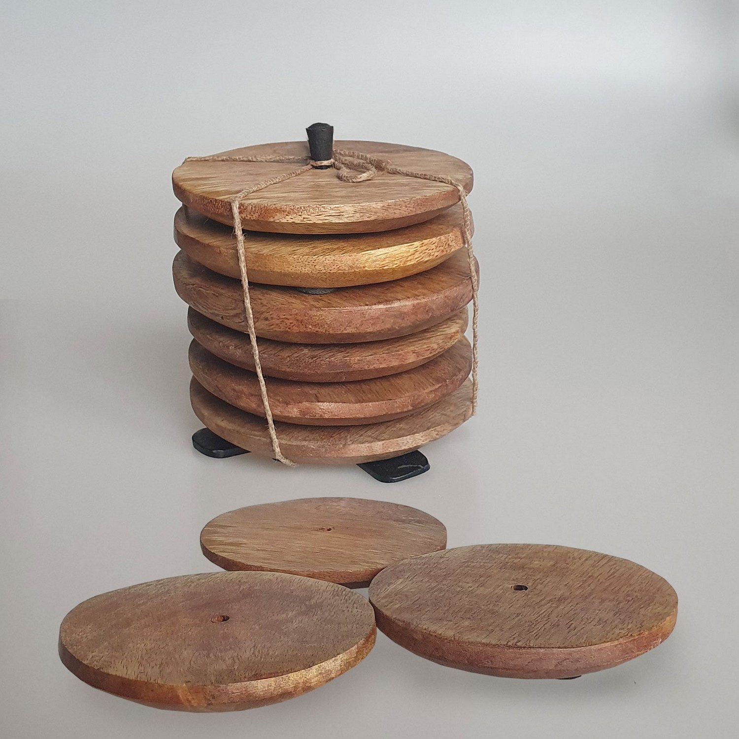 Diese hochwertigen Untersetzer aus massivem Mangoholz vereinen Natürlichkeit, rustikalen Charme und praktische Funktion. Im 6er-Set mit passendem Ständer bieten sie nicht nur Schutz für Tisch und Möbel, sondern setzen auch dekorative Akzente. Jeder Untersetzer ist ein Unikat – die natürliche Maserung des Mangoholzes sorgt für einen authentischen Look, während die glatte Oberfläche ein angenehmes Gefühl und leichte Reinigung ermöglicht. Durch ihren warmen Braunton passen die Untersetzer perfekt zu gemütlichen Anlässen wie Familienfeiern, Herbstfesten, Weihnachten oder romantischen Abenden. Dank ihres Vintage-Charakters im Shabby Chic Stil fügen sie sich harmonisch in rustikale, ländliche oder moderne Wohnkonzepte ein. Ob als stilvolle Tischdeko oder als liebevolle Geschenkidee – dieses Untersetzer-Set ist immer eine charmante Wahl.