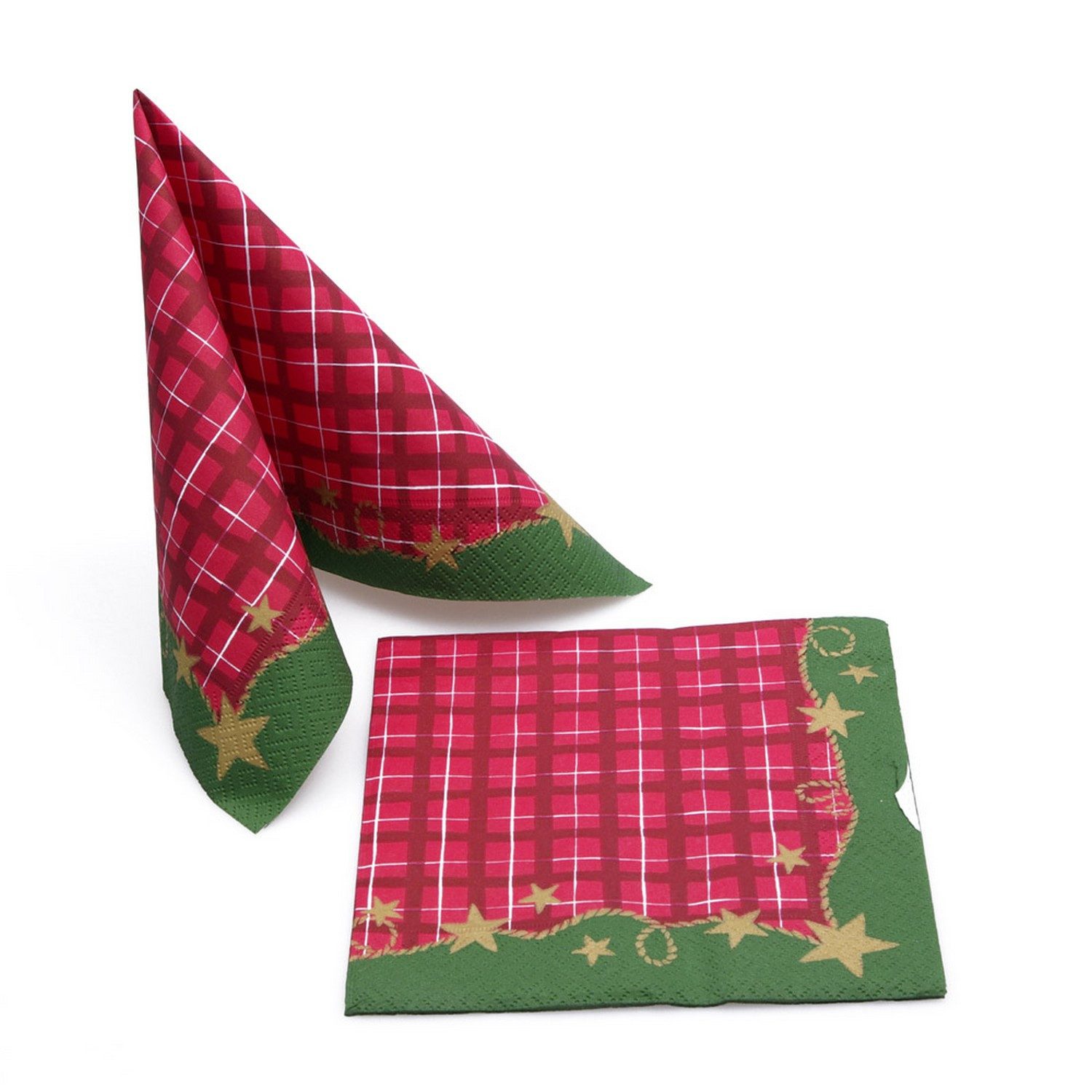 Für das gemeinsame Essen im Freundeskreis gehört zur Adventszeit die passende Serviette. Das festliche Motiv mit Goldkordel und kleinen Sternchen wirkt auf der roten Serviette mit dem grünen Rand schön weihnachtlich. Das Material ist umweltfreundlich und recyclebar.