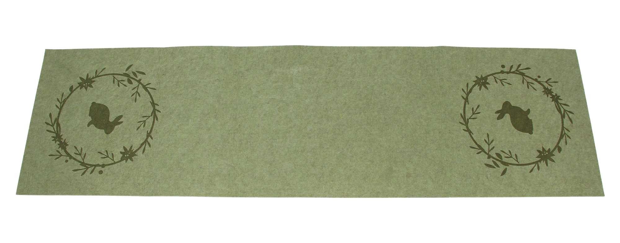 Dieser wunderschöne Tischläufer "Osterkranz" bringt frühlingshafte Eleganz in Ihr Zuhause. Gefertigt aus hochwertigem Filz in einem sanften Grünton, sorgt er für eine natürliche und harmonische Optik auf Ihrem Tisch. Das geprägte Ostermotiv mit filigranen Blumenranken und niedlichen Hasensilhouetten verleiht dem Läufer eine dezente, aber dennoch festliche Ausstrahlung, die perfekt zur Osterzeit passt.