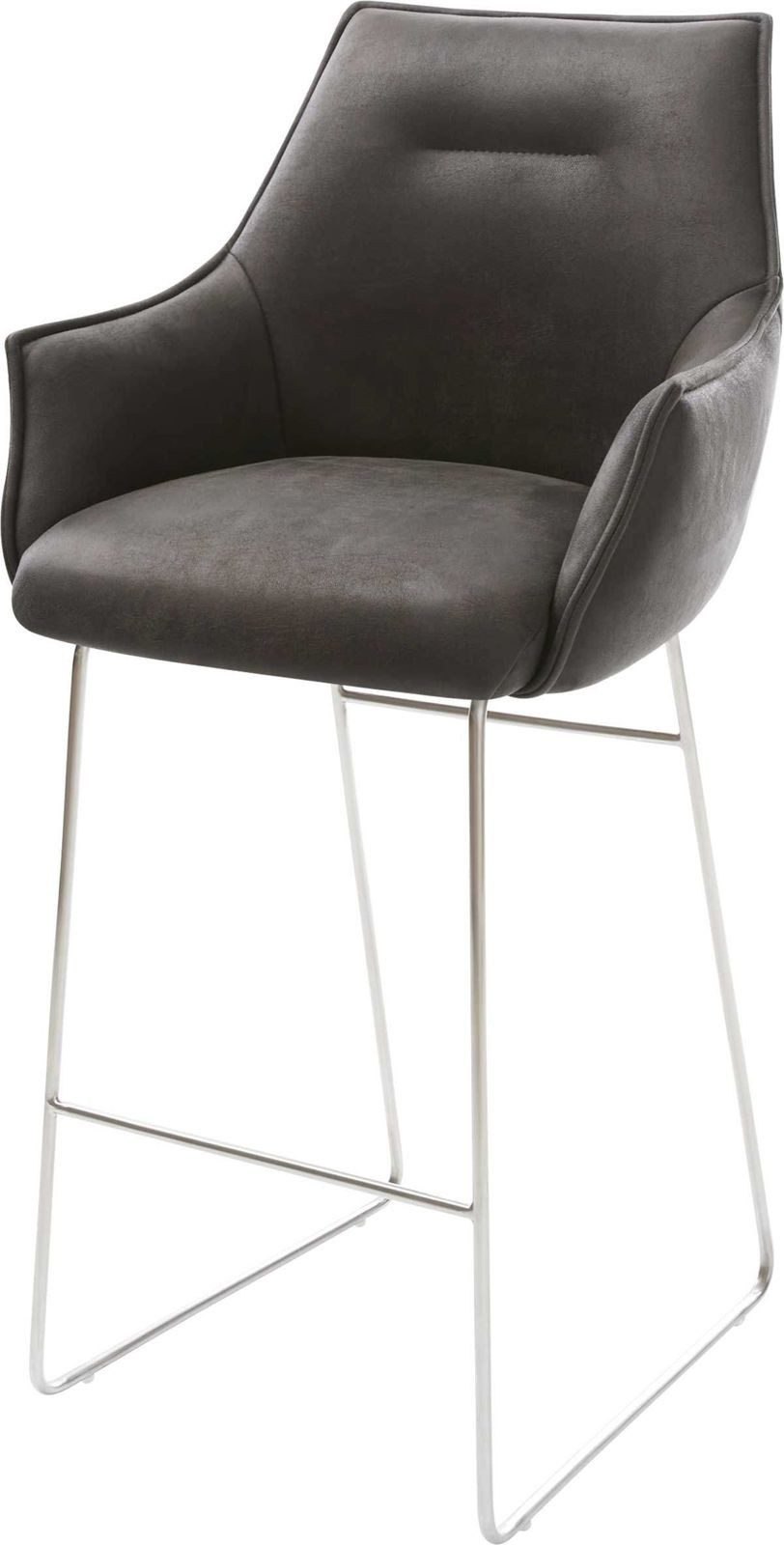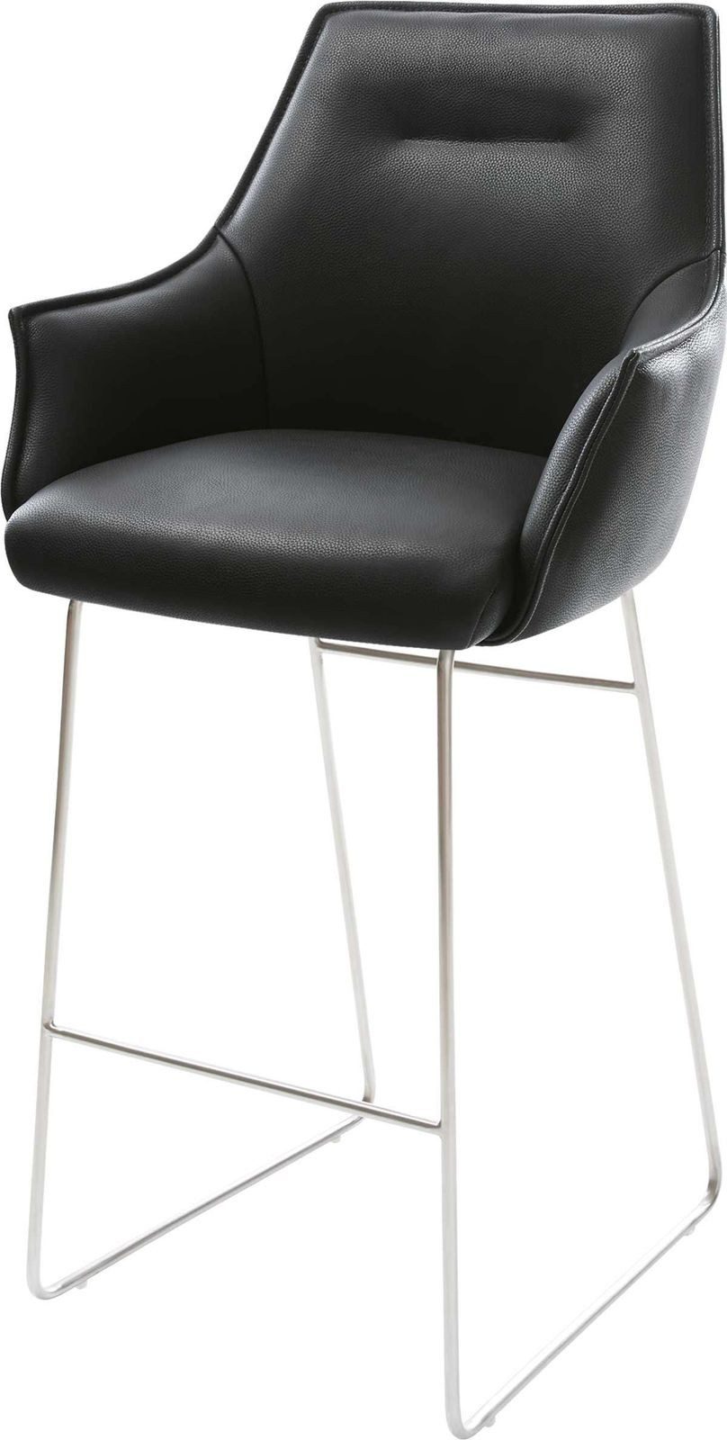 Der Barstuhl Alja mit Armlehnen punktet durch sein elegantes Design mit formschöner Linienführung und raffiniertem Einzug im Rückenbereich. Die Innenseite des Stuhls wurde mit einem vertikalen Faltenspiel besonders soft gestaltet und steht im interessanten Kontrast zur runden und formstabilen Außenseite. Schlanke Armlehnen und eine hervorragende Polsterung mit Taschenfederkern laden zum Verweilen ein und sorgen für echten Sitzkomfort über viele Stunden.