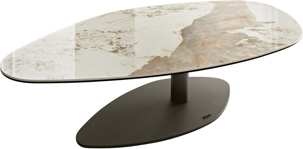 Aus wertvoller Keramik gefertigt, begeistert der Couchtisch Vibana durch seine anspruchsvolle Form und die polierte Tischplatte mit glatter Oberfläche in lebendigen Beige- und Weißtönen. Die Keramik ist besonders robust und spielend leicht zu reinigen.