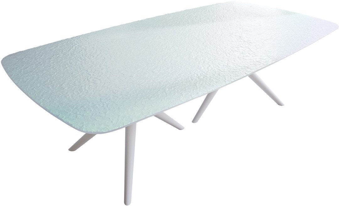 Nicht nur die außergewöhnlich Bootform macht den Esstisch Edge zum extravaganten Mittelpunkt in Ihrem Zuhause. Es ist vor allem die einzigartige Tischplatte aus Schmelzglas, die Edge so unwiderstehlich macht. Das Glas wurde bis zu 800 Grad erhitzt und mit einem Stempel bearbeitet. Dieser schenkt der Oberfläche ein elegantes 3D Relief, das sowohl optisch als auch haptisch ein echtes Erlebnis ist. Mit der schwarzen Farbgebung wirkt der Esstisch aus gehärtetem Schmelzglas äußerst stilvoll und bemerkenswert.