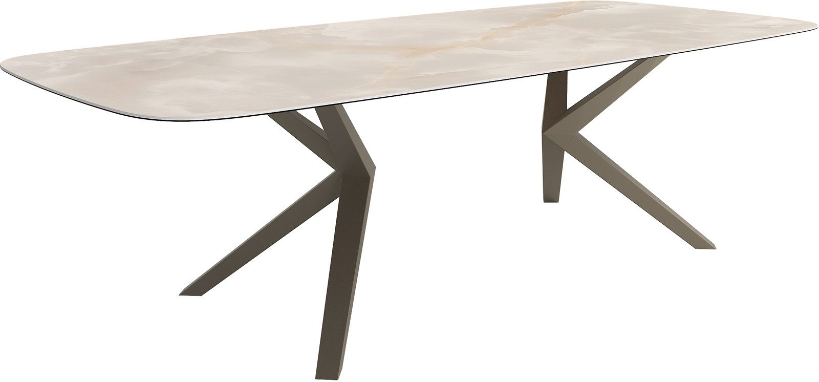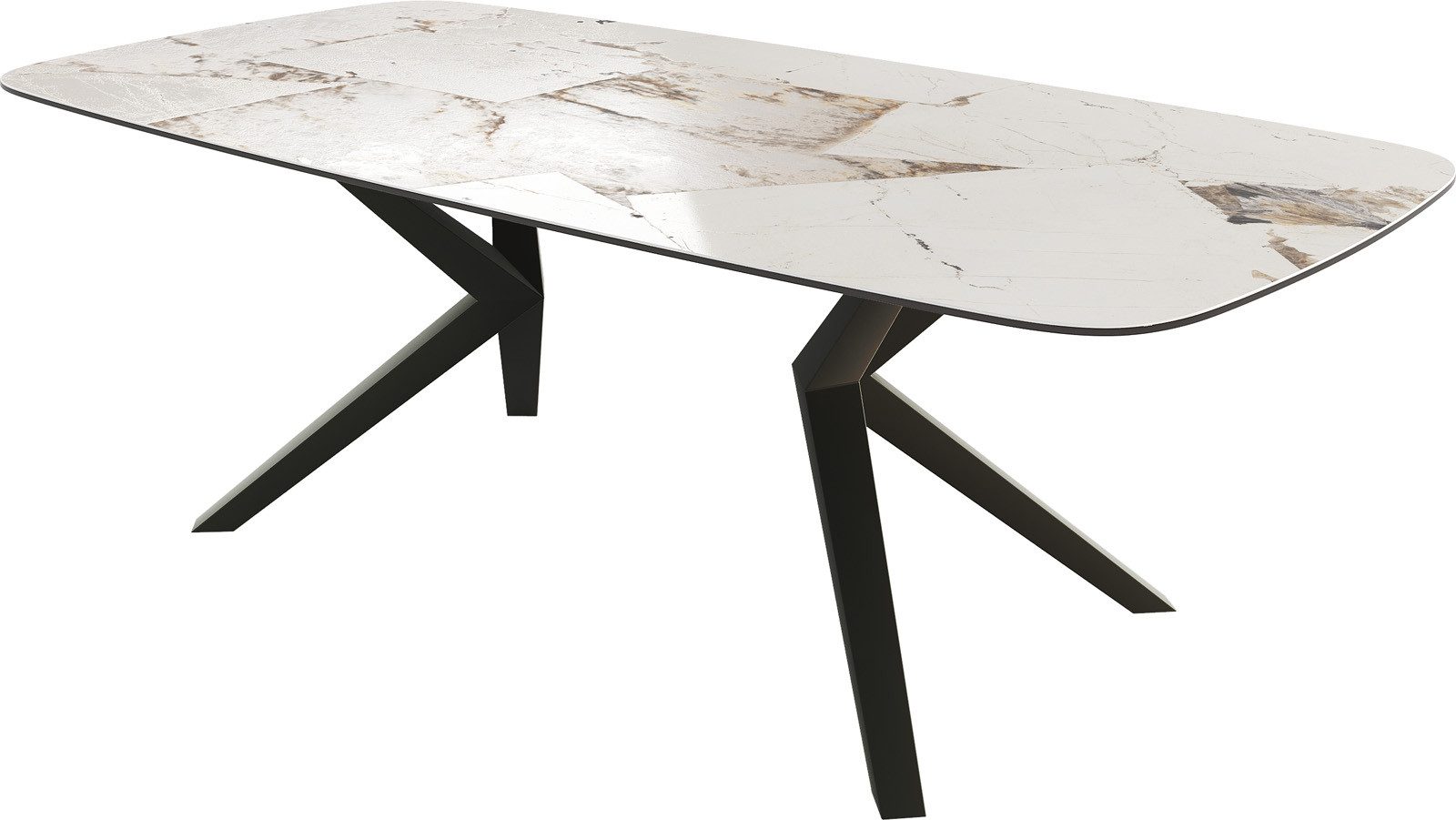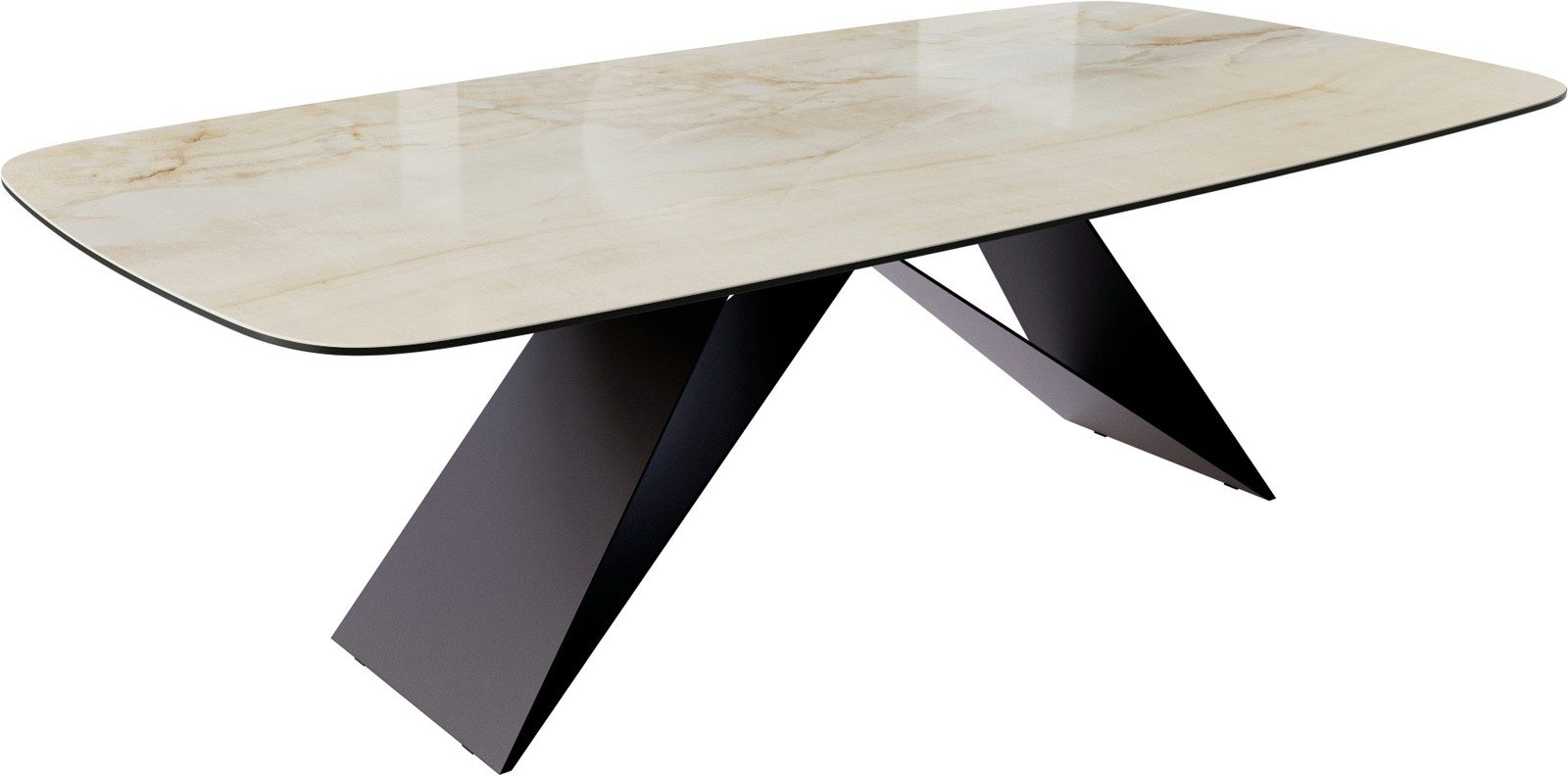 Der wunderschöne Esstisch Edge erinnert mit seiner einmaligen Farbgebung aus Weiß- und Beigetönen und der polierten Oberfläche an wertvollen Marmor. Gefertigt wurde er aus hochwertiger Keramik, die im Gegensatz zu Marmor über hervorragende Pflegeeigenschaften verfügt und Ihnen lange Freude bereiten wird. Die ungewöhnliche Bootform schenkt Ihnen ein großzügiges Platzangebot und rundet das exklusive Design in aufregender Weise ab.