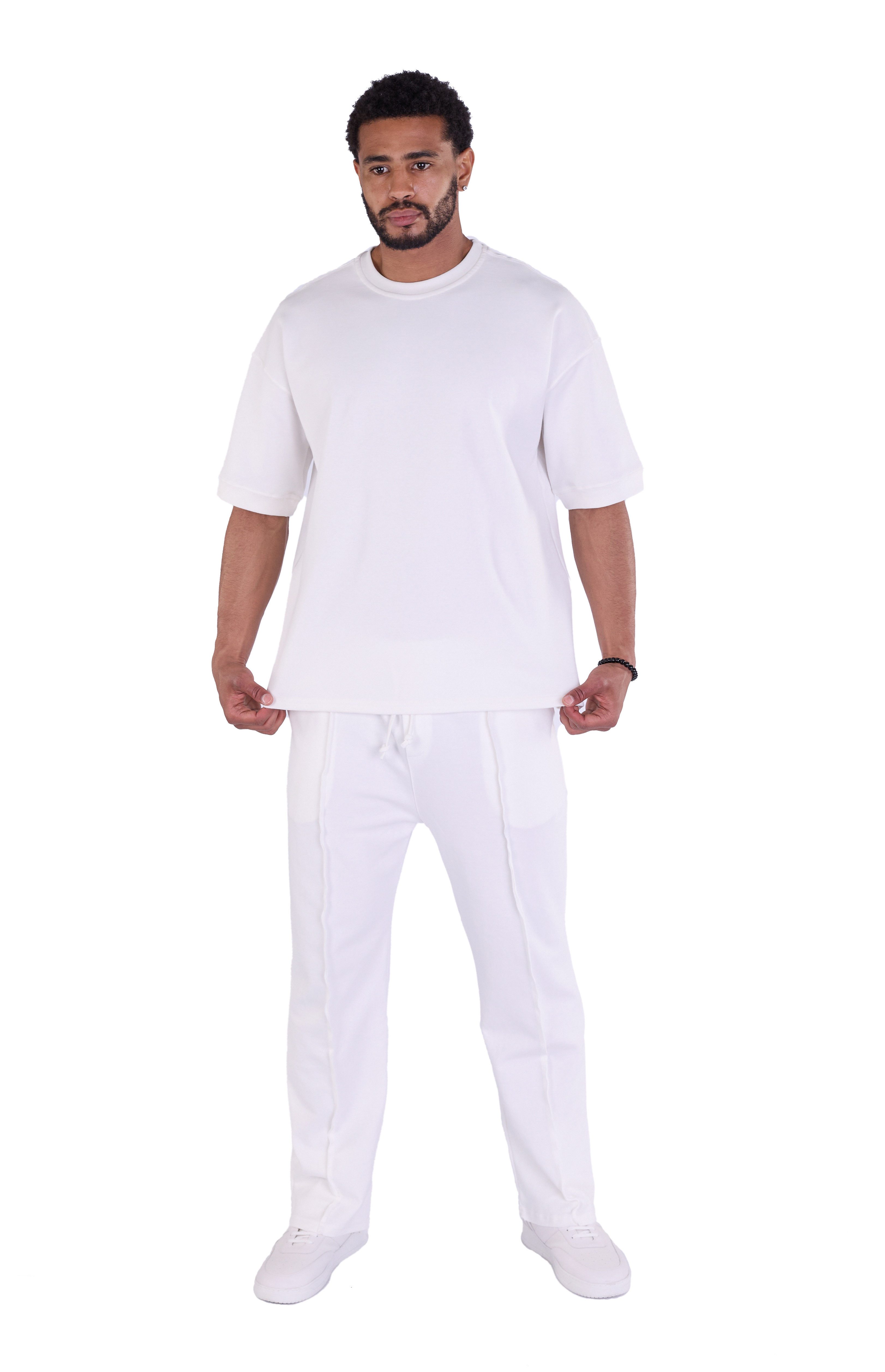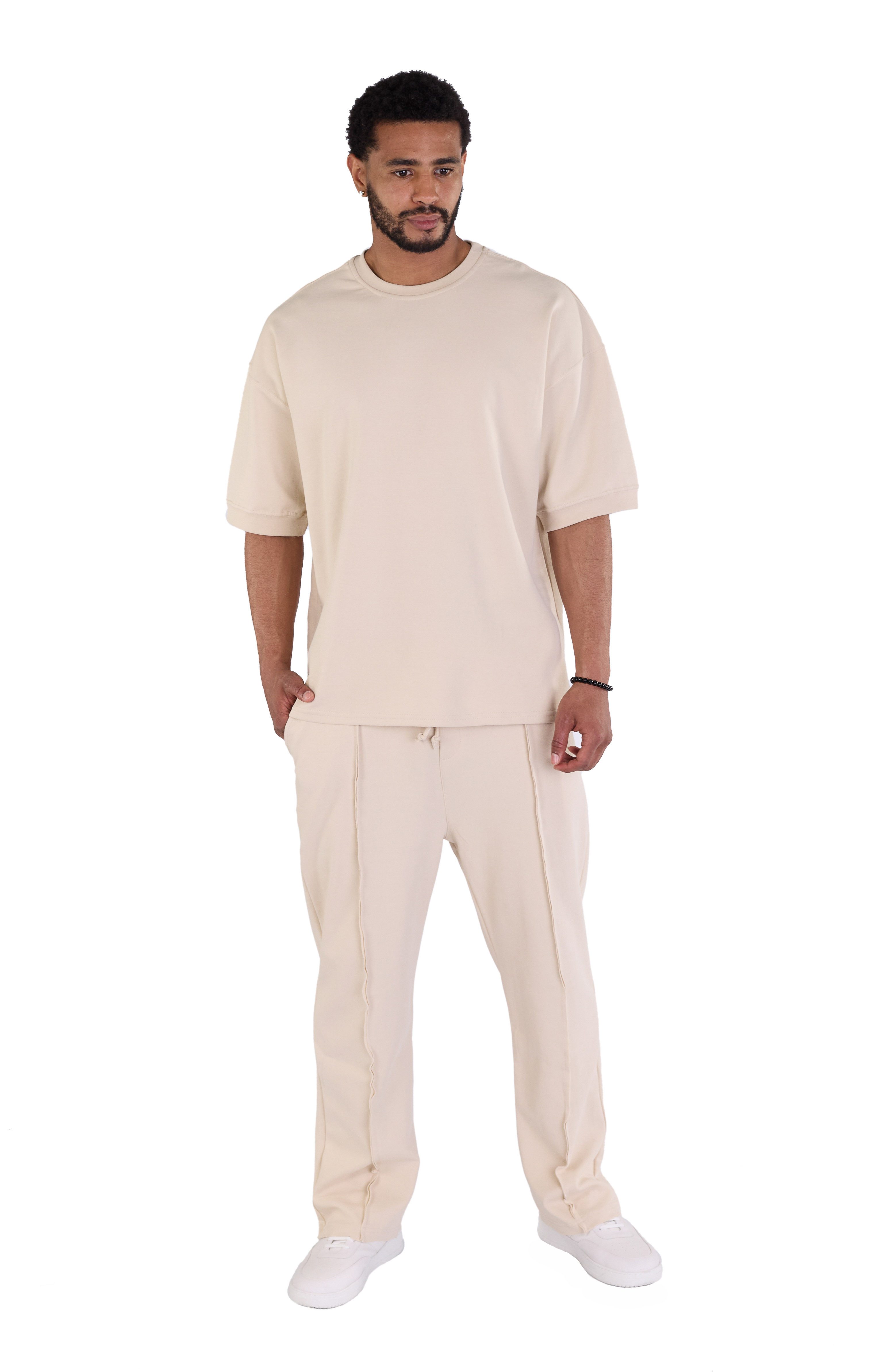 Genieße ultimative Entspannung und einen trendigen Look mit unserem Oversized Freizeitanzug. Die Kombination aus einer Baggy Hose mit einzigartiger Nahtoptik und einem locker geschnittenen T-Shirt mit besonderen Ärmelbündchen macht diesen Zweiteiler zum idealen Begleiter für entspannte Tage und stylische Auftritte.