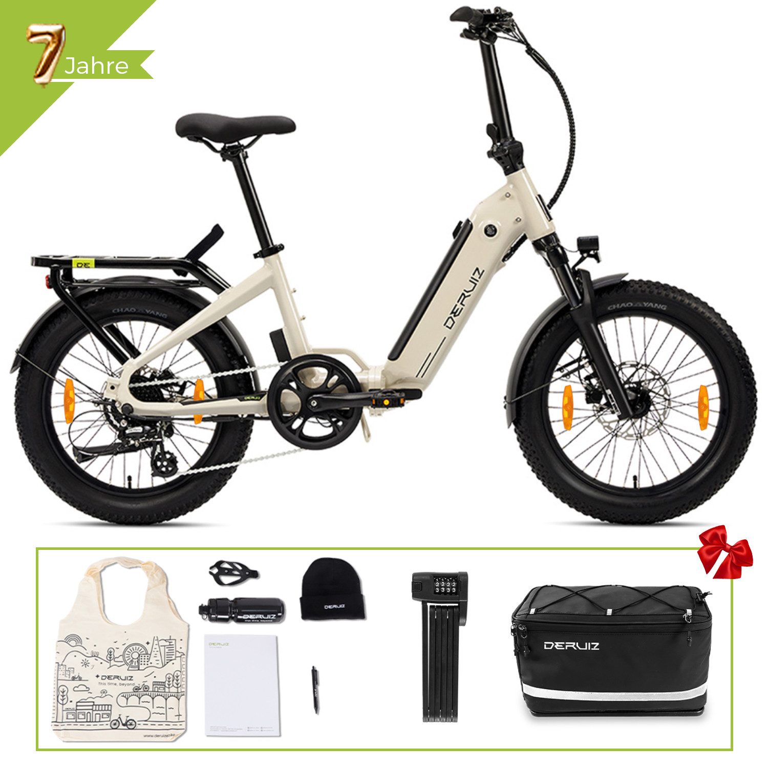 Die stoßdämpfende Federgabel in Kombination mit robusten 3.0-Zoll-Fat-Tires bietet ein geschmeidiges Fahrerlebnis auf Asphalt, Kopfsteinpflaster oder leichtem Gelände. Perfekt für Pendler, die täglich durch die Stadt fahren.