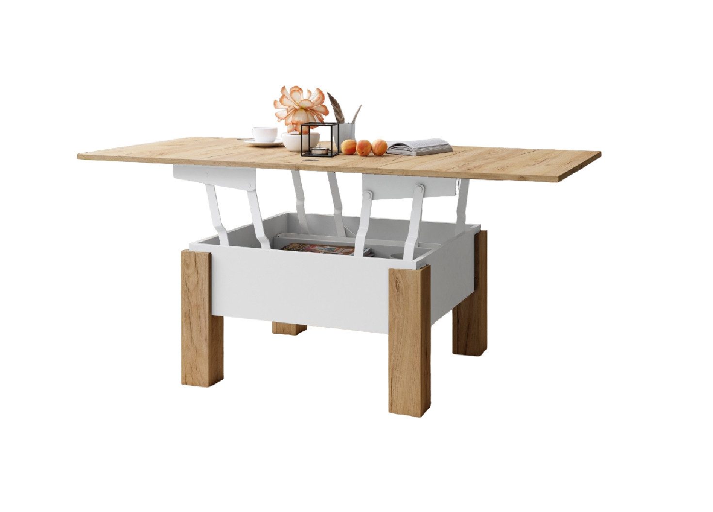 Ein wunderschöner, stabiler und äußerst praktischer Funktionscouchtisch, der sich mühelos in einen stabilen Esstisch umwandeln lässt. Dieser moderne Tisch hat eine Tiefe von 75 cm und kann von 80 cm auf 160 cm in der Довжина ausgeklappt werden. Zusätzlich ist er in zwei Höhen verstellbar: 49 cm oder 76 cm. Ein einfaches und praktisches System ermöglicht die Anpassung der Höhe und Breite.