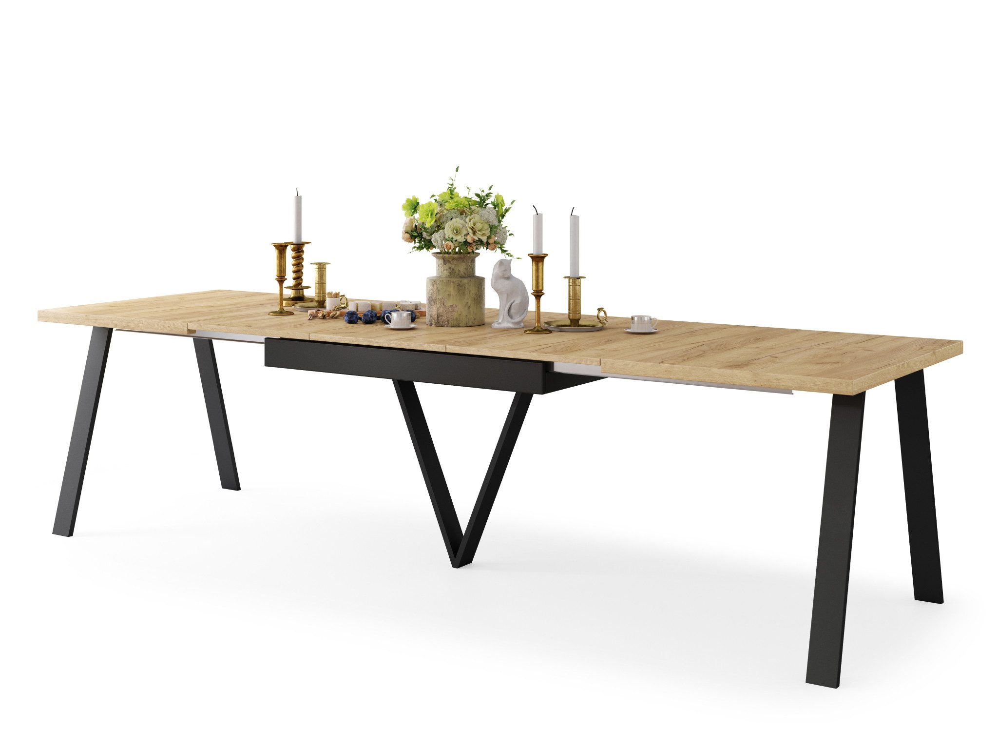 - Breite: 140 / 190 / 240 / 290 cm (die Verlängerungsplatte wird bequem und nicht sichtbar im Tisch verstaut)