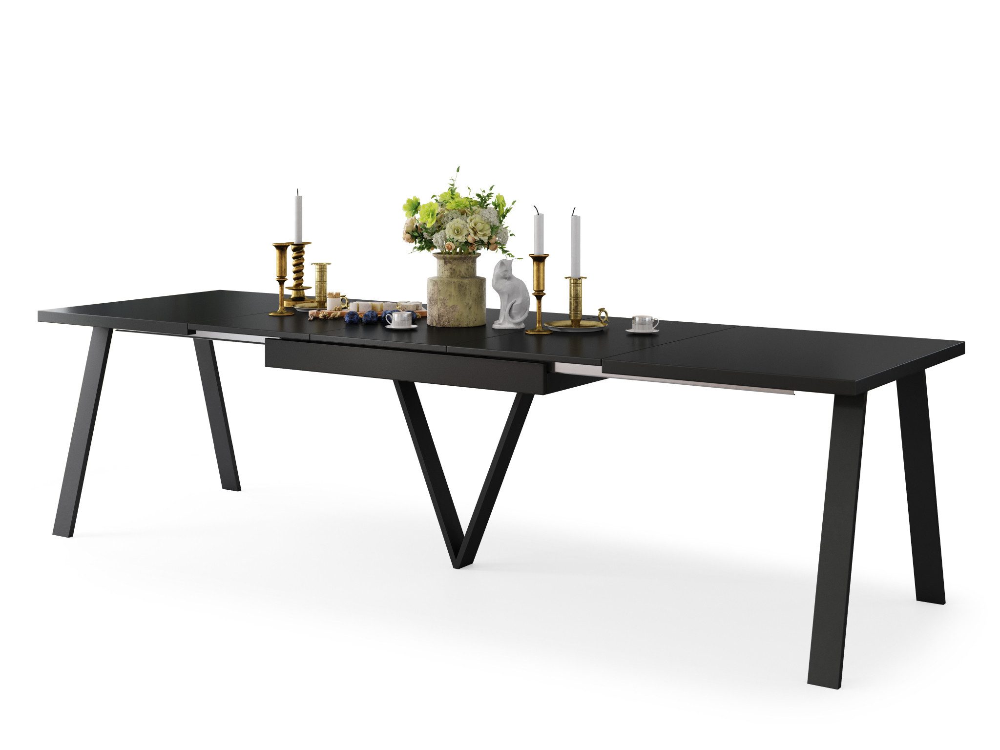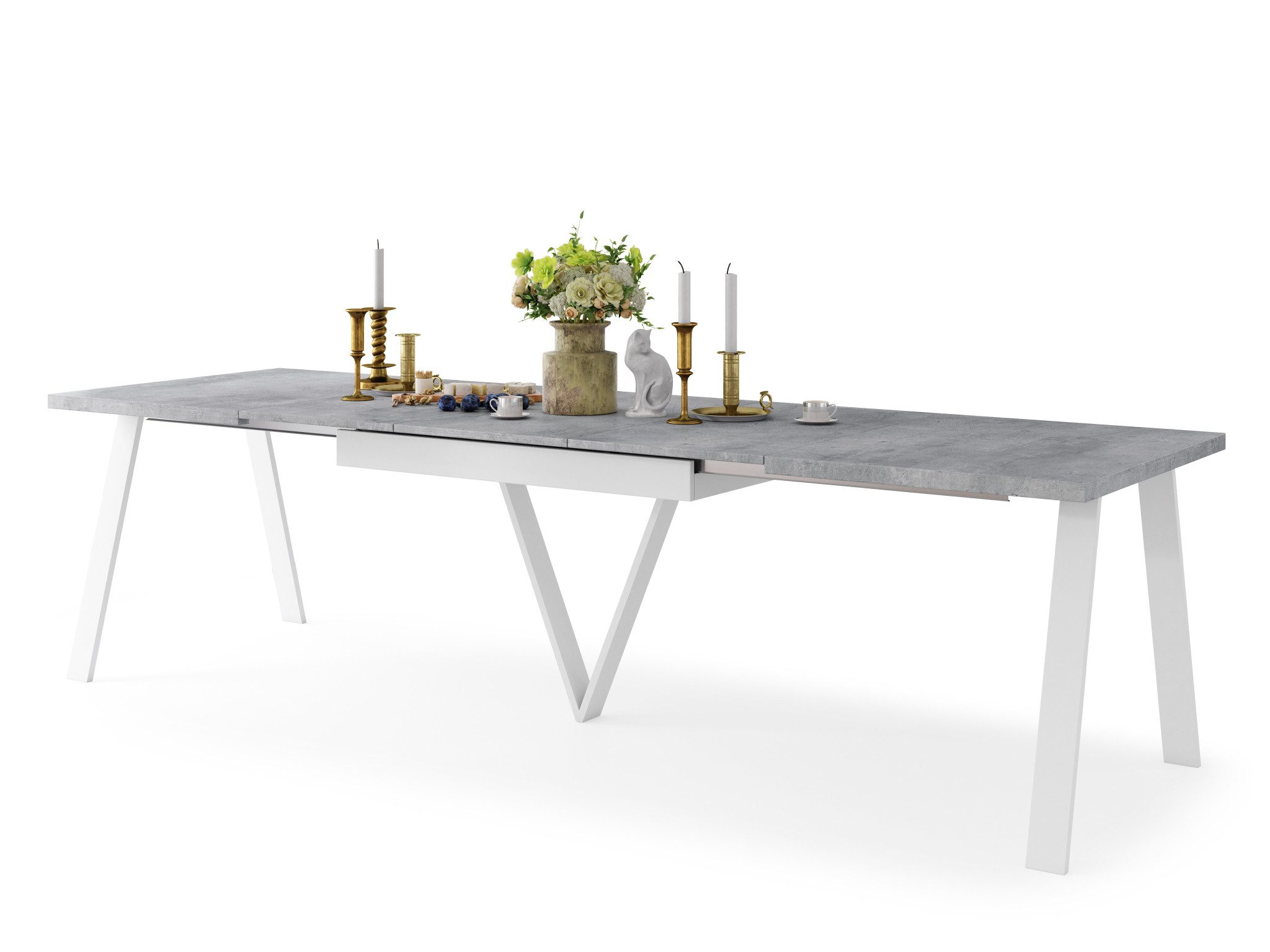 Ein schöner und sehr praktischer Esstisch, der sich in der Довжина ausziehen lässt. Um die Довжина des Tisches zu vergrößern, werden die beiden Oberplatten auseinandergezogen (durch das Ziehen nur einer Platte bewegt sich automatisch die andere - "Synchronauszug") und das Verlängerungselement aus dem Tisch genommen. Dieser Funktionstisch ist sowohl von seiner Erscheinung, als auch von seiner Funktionalität etwas besonderes. Durch seine Geradlinigkeit entsteht ein stilvolles und zeitloses Design, wodurch in Ihren Räumlichkeiten neue Akzente gesetzt werden.