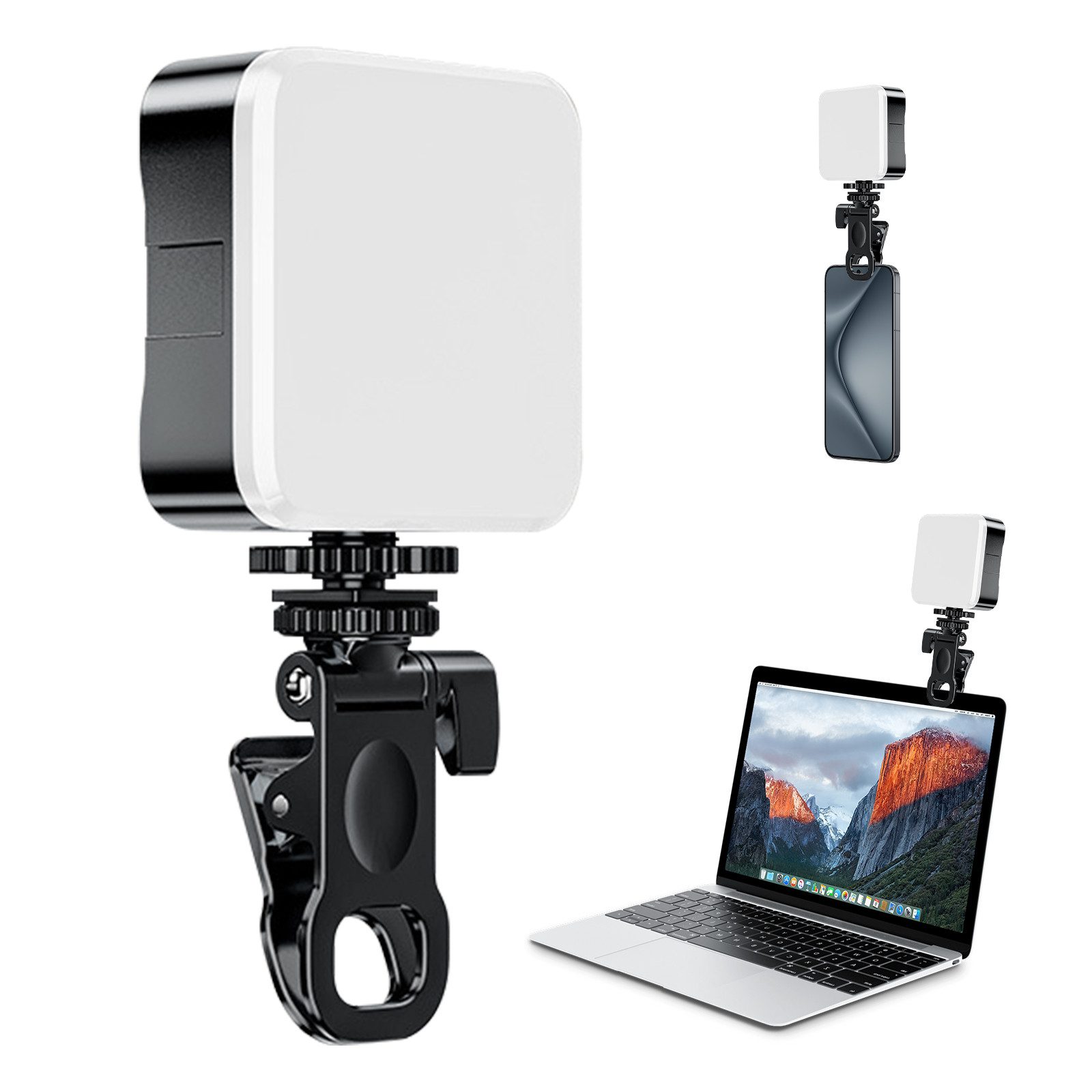 Selfie Licht mit Clip, Max Clipbreite 2 cm, die Klemme verwendet hochwertiges Kunststoffmaterial, unglaublich stabil, fällt nicht leicht herunter, weit verbreitet für verschiedene Handys, iPad , Tablet, Laptop usw. Das Videolicht ist mit der 1/4-Zoll-Schraube ausgestattet, die mit einem universellen Kaltschuhadapter an der Unterseite an einer Kamera, einem Stativ, einer Mikrofonhalterung oder einer anderen Halterung befestigt werden kann.