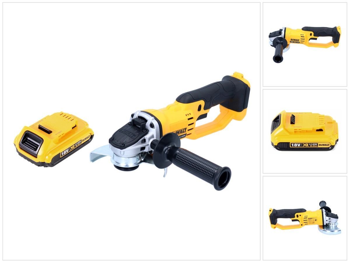 Das Werkzeug eignet sich als Schleifer, Drahtbürste und Trennschleifmaschine, es ist aber nicht geeignet zum Sandschleifen und Polieren. Der Winkelschleifer mit 125 mm Durchmesser und sehr flachem Getriebegehäuse ermöglicht das Arbeiten bei eingeengten Platzverhältnissen. Das verbaute schrägverzahnte Getriebe sorgt für vibrationsarmen Einsatz und maximale Lebensdauer der Maschine. Der integrierte Verriegelungsschalter sorgt für einen sicheren Einsatz des Schleifers, zugleich garantiert der zweifach positionierbare Seitengriff perfekte Maschinenkontrolle bei allen Anwendungen. Die Schnellwechselmutter ermöglicht problemlosen und sicheren Scheibenwechsel in kürzester Zeit zusätzlich zur mitgelieferten Schutzhaube, die werkzeuglos, schnell und unkompliziert je nach Bedarf des Anwenders verstellt werden kann. Der Winkelschleifer besitzt einen luftgekühlten PM58-Hochleistungsmotor und austauschbare Kohlebürsten. Der Akku mit 2 Ah Akkukapazität überzeugt mit kompaktem Design und robustem Gehäuse. Der Akku mit Li-Ion Technologie, welche die Lebensdauer und die Laufzeit der Akkus maximiert, kann für alle 18 V XR Li-Ion Geräte von DeWalt verwendet werden. Für optimale Übersicht der Akkuladung sind die Akkus zusätzlich mit einer LED-Akkukapazitätsanzeige ausgestattet.
