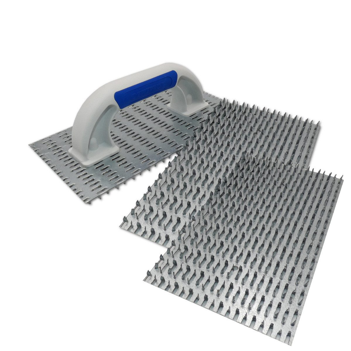Der DEWEPRO Edelputzkratzer 250x130 mm ist ein Profi-Werkzeug zum Abtragen, Schleifen und Egalisieren von Alt- und Edelputz. Dieses praktische Set enthält den robusten Putzkratzer mit gezahnter Metallplatte sowie 2 Ersatzblätter – für längere Einsatzdauer und weniger Unterbrechungen.