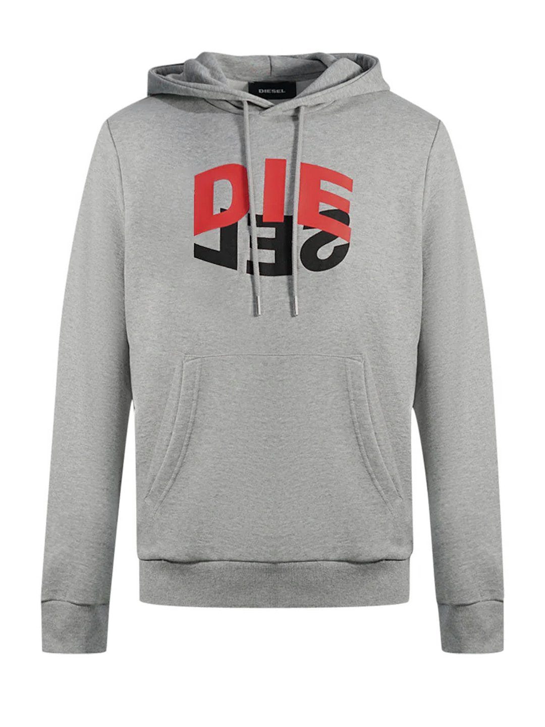 Grauer Diesel Hoodie in regulärer Passform mit einzigartigem Logo-Schriftzug. Aus superweicher Baumwolle gefertigt für maximalen Komfort. 100% Baumwolle.. Das Model ist 188 cm und trägt Розмір L.