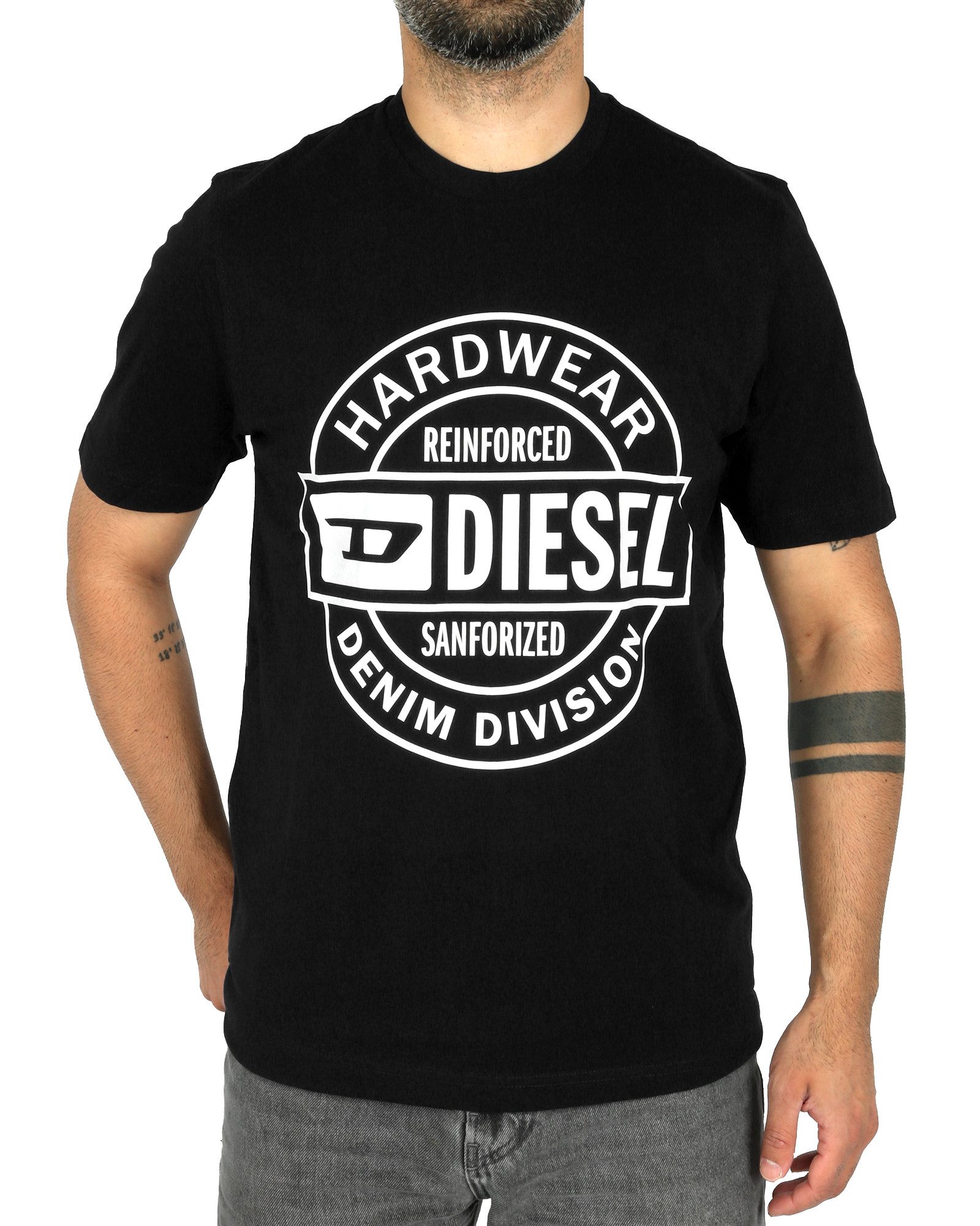 Dieses Rundhals-T-Shirt von Diesel in regulärer Passform überzeugt mit einem unverkennbaren Diesel-Logo, das in Kontrastfarbe auf die Brust gedruckt ist. Als zentrales Design-Element setzt der Druck ein klares Statement und verleiht dem klassischen Shirt eine dynamische Note, die perfekt den modernen Diesel-Look widerspiegelt. Gefertigt aus 100% feinster Baumwolle mit weicher Haptik für höchsten Tragekomfort. Das Model ist 184 cm und trägt Розмір M.