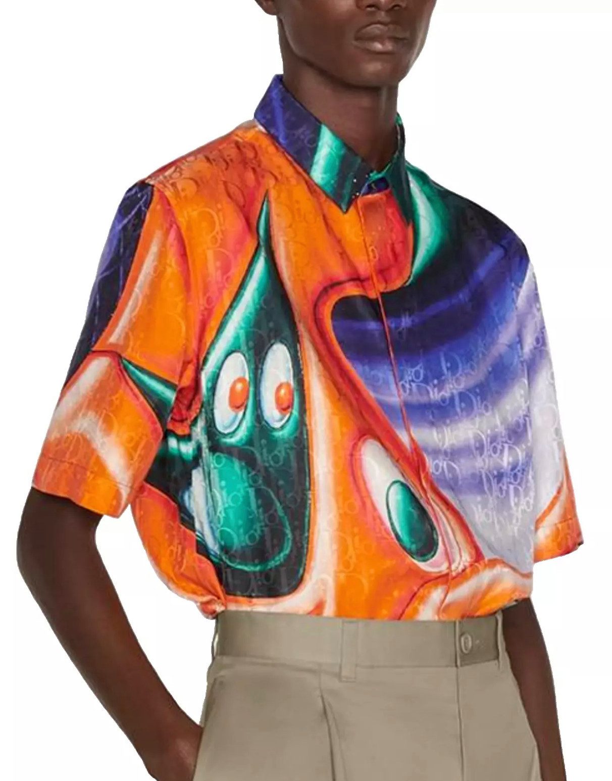 Dieses kurzärmelige Hemd ist das Ergebnis einer einzigartigen Zusammenarbeit zwischen Dior und dem renommierten Künstler Kenny Scharf. Gefertigt aus Seide und Baumwolljacquard, zeigt das Design einen Allover-Druck des multicolor DIOR AND KENNY SCHARF Prints. Der grafische Print verleiht dem Hemd eine auffällige Optik und kann perfekt mit passenden Shorts für einen kompletten Sommer-Look kombiniert werden.