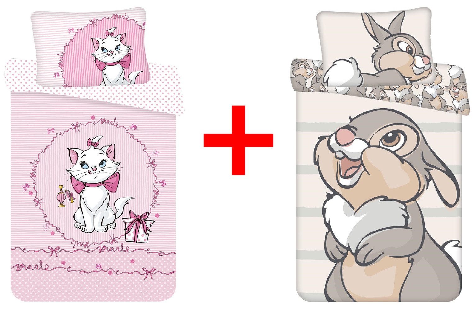 Charakter: Bettwäsche-Set Motiv: Marie von den Aristocats und Klopfer von Bambi Bekannt aus: Disney Farbe: mehrfarbig Розмір Bettdecken-Bezug: 100 x 135 cm Розмір Kopfkissen-Bezug: 40 x 60 cm Material: 100% Baumwolle Pflegehinweis: Maschinenwäsche bei 40 °C, für den Trockner geeignet Lieferumfang: 2 Bettwäsche Sets