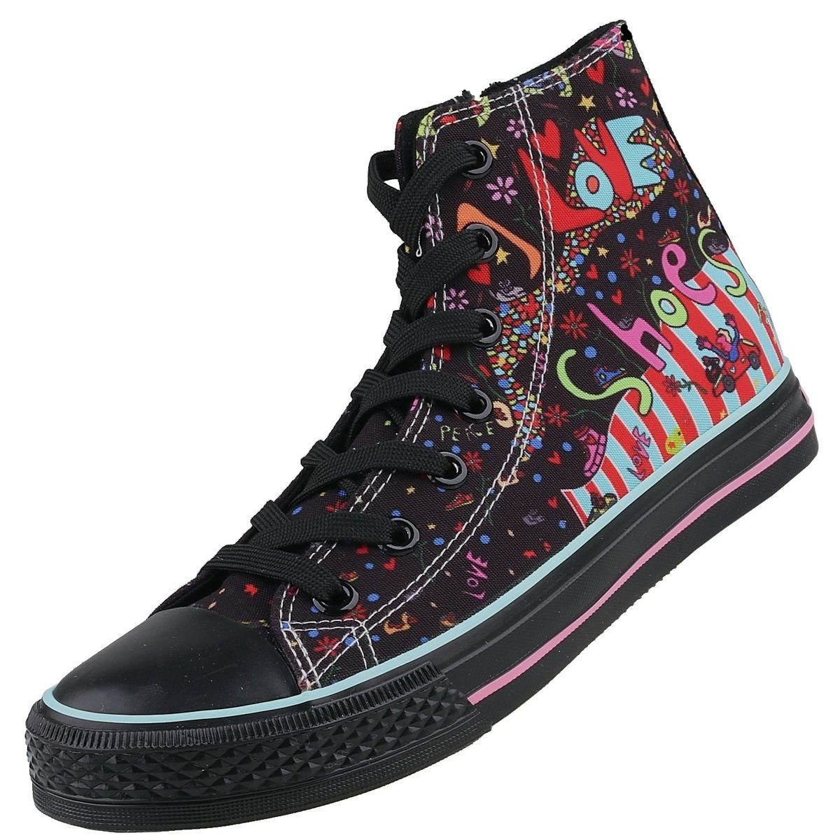 Dieser High-Top Sneaker aus Canvas ist genau der richtige Schuh zu Ihrem Alltags-Outfit. Der Innenschuh besteht komplett aus tragefreundlichem Textil, was Ihren Füßen gerade an warmen Tagen ein angenehmes Tragegefühl bescheren wird. Die Zehenkappe unterstreicht den sportiven Look. Flach und super biegsam kommt die Gummilaufsohle daher. Reißverschluss innenseitig. Schafthöhe ca. 10 cm.
