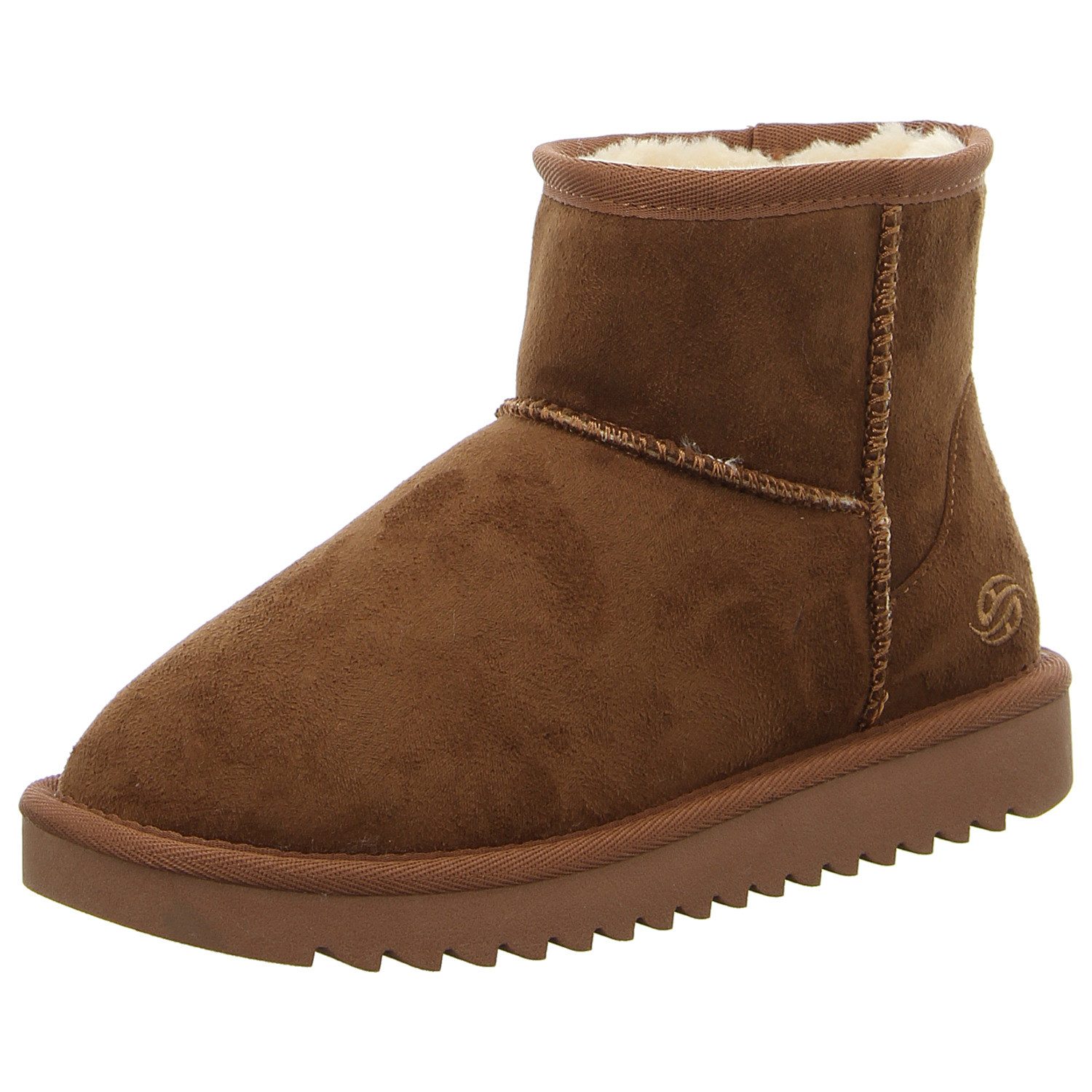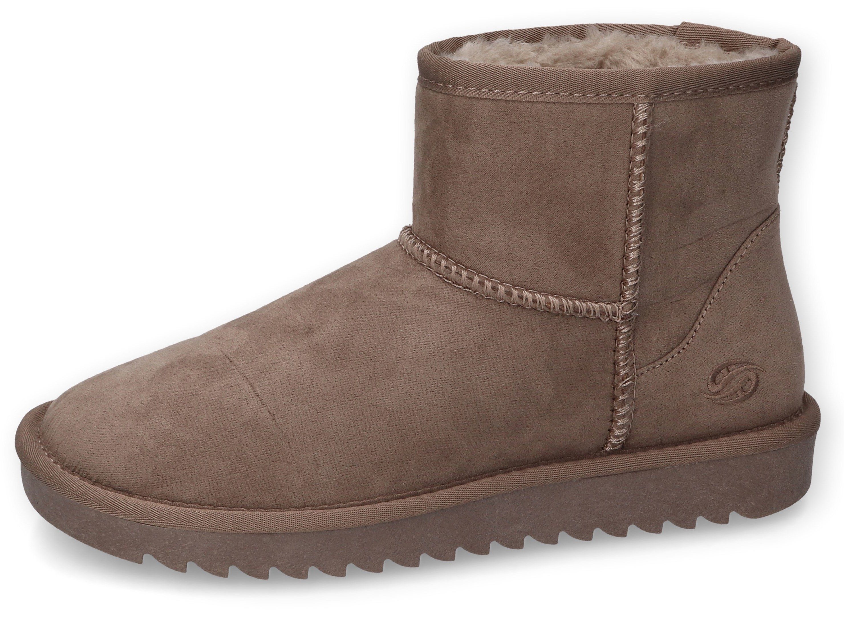 Das Obermaterial aus Velourslederimitat ist geschmeidig und weich. Dank der leicht profilierten Sohle aus Synthetik sorgen die Winterboots für mehr Rutschfestigkeit auf unebenem Untergrund. Innerhalb des Schuhs sorgt das Futter für warme Füße. Der Plateauabsatz schafft zusätzliche Höhe und verbessert gleichzeitig den Komfort. Diese Winterboots in Weite F sind für schmale bis normale Füße geeignet.