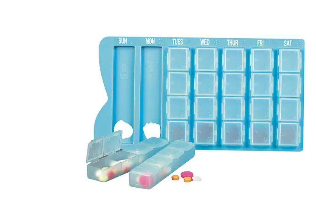 Optimale Medikamentenorganisation: Der Medikamenten Wochendispenser groß bietet eine clevere Lösung zur einfachen und geordneten Aufbewahrung von Medikamenten. Mit 7 herausklinkbaren Tagesdispensern, jeweils mit 4 Klappdeckeln, ermöglicht er eine übersichtliche Strukturierung der wöchentlichen Medikamenteneinnahme. Praktisches Design: Das handliche Tablett ist besonders benutzerfreundlich und erlaubt es dem Patienten, täglich nur den benötigten Dispenser mitzunehmen. Im Krankenhaus oder Altenheim kann der Gesamtdispenser effizient eingesetzt werden, um eine organisierte Medikamentenverwaltung zu gewährleisten. Hochwertige Materialien: Hergestellt aus haltbarem Kunststoff und mit einer zweisprachigen Beschriftung sowie Tastsymbolen/Blindenschrift versehen, bietet der Wochendispenser eine langlebige und benutzerfreundliche Lösung für die Medikamentenaufbewahrung. Einfache Handhabung: Jeder Dispenser ist einzeln verpackt und ermöglicht so eine einfache Handhabung und Mitnahme. Die klappbaren Deckel erleichtern zudem den Zugriff auf die Medikamente und sorgen für eine sichere Aufbewahrung. Mit dem Medikamenten Wochendispenser groß behält man die Medikamenteneinnahme im Blick und vereinfacht den Alltag.