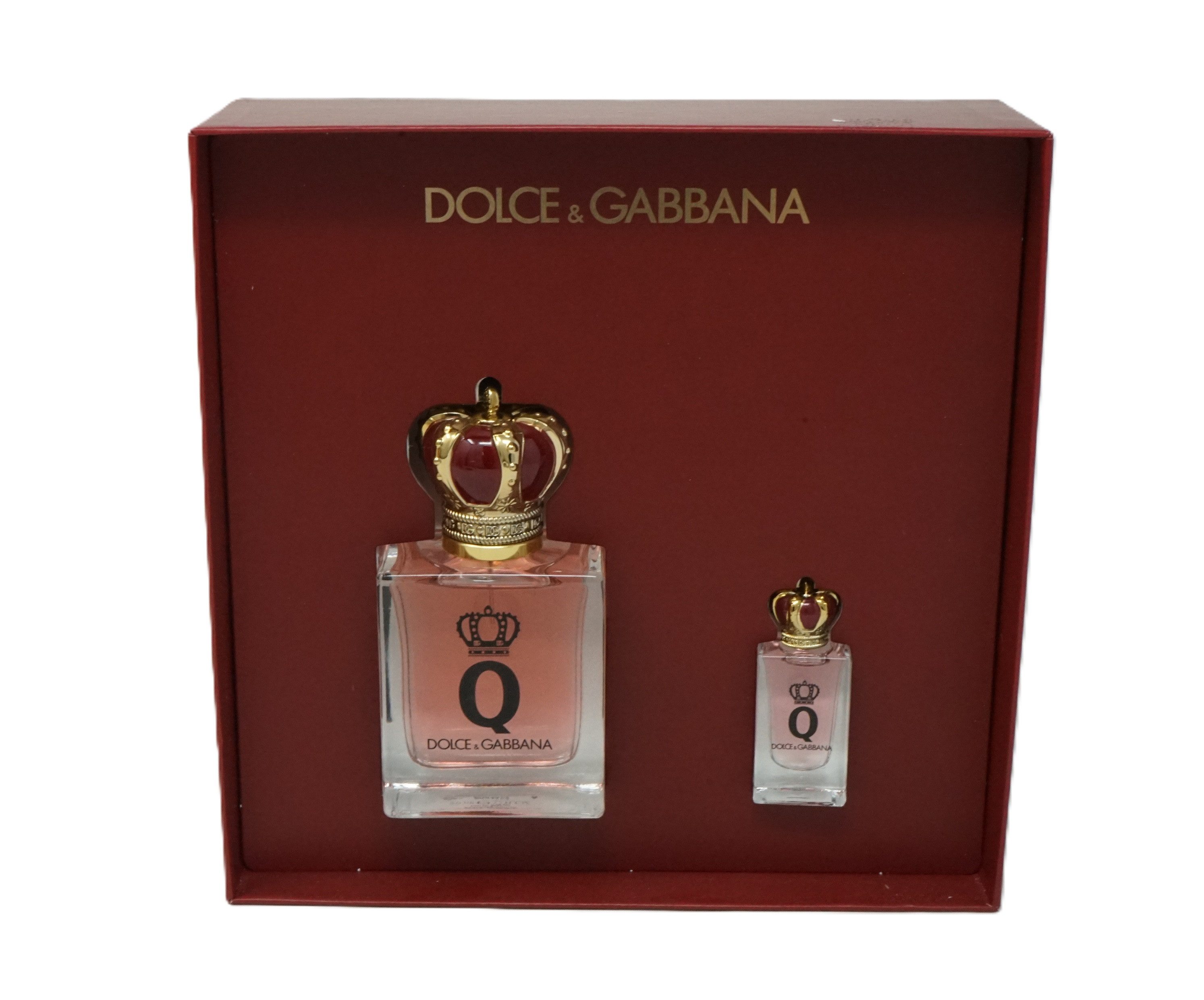 Dolce & Gabbana Q Eau de Parfum ist ein kraftvoller und charismatischer Duft der mit einer Mischung aus spritzigen Zitrusfrüchten verführerischen Kirschnoten und einer warmen holzigen Basis eine königliche Eleganz ausstrahlt Dieses Set enthält ein 50 ml Eau de Parfum sowie eine handliche 5 ml Reisegröße Perfekt für Frauen die einen modernen und ausdrucksstarken Duft lieben