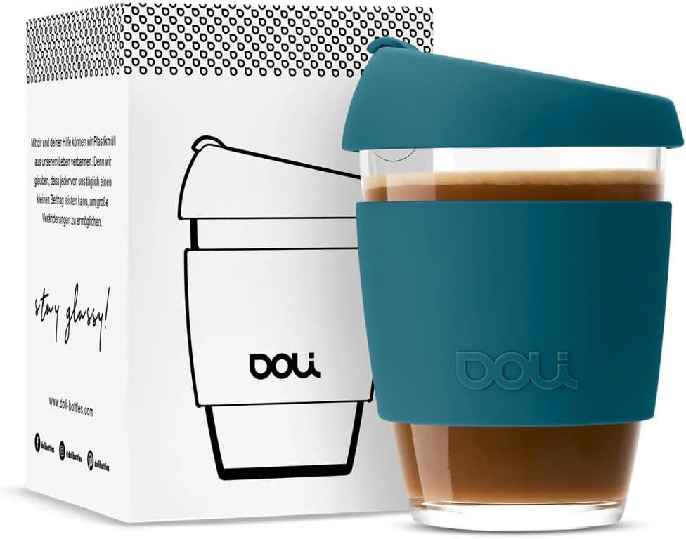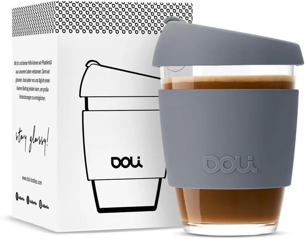 Entdecke den innovativen Doli Coffee-to-go-Becher – deinen neuen Kaffeebecher aus hochwertigem Borosilikatglas, der sich perfekt für heiße und kalte Getränke eignet. Dank seiner Temperaturbeständigkeit und geschmacksneutralen Eigenschaften genießt du deinen Kaffee in bester Qualität, egal ob zu Hause, im Büro oder unterwegs. Der Becher besticht nicht nur durch sein elegantes Design, sondern auch durch seine praktische Ausstattung: Eine integrierte Thermohülle aus Silikon sorgt für einen sicheren, angenehmen Griff und macht den Becher ideal für den Weg zur Arbeit oder für entspannte Momente in der Stadt. Mit seiner auslaufsicher verschließbaren Konstruktion und der optimierten Form passt der 340‑ml Becher mühelos unter gängige Kaffeemaschinen – ein Must-have für alle, die Wert auf höchste Funktionalität und stilvolles Design legen. Die einfache und schnelle Reinigung in der Spülmaschine garantiert zudem, dass dein Coffee-to-go-Becher stets hygienisch sauber bleibt. Unser nachhaltiges und plastikfreies Konzept unterstreicht den verantwortungsbewussten Umgang mit Ressourcen: Mit dem Doli Kaffeebecher leistest du einen aktiven Beitrag zur Reduzierung von Plastikmüll. Überzeuge dich selbst von der Qualität unseres Produkts – wir bieten sogar eine 100 Tage Glas-Garantie: Sollte dein Glas Kaffeebecher innerhalb der ersten 100 Tage nach dem Kauf zerbrechen, ersetzen wir ihn kostenlos. Erlebe Liebe auf den ersten Schluck und genieße deinen Lieblingskaffee in einem Becher, der nicht nur optisch überzeugt, sondern auch in Sachen Еко-товари und Funktionalität neue Maßstäbe setzt.