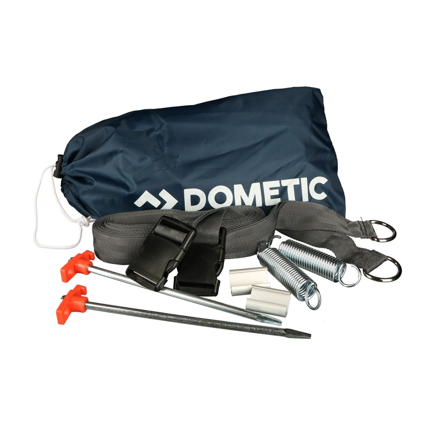 Spannband zur festen Verankerung von Markisen mit Standbeinen im Boden. Besonders an windigen Tagen sorgen die verstellbaren Gurte, robusten Schnallen und Spannfedern für den sicheren Halt Ihrer Markise. Die Spannfedern entlasten die Markise bei mechanischer Belastung durch Wind. Inhalt: 2x Spanngurte mit Kunststoffschnallen 2x Stahlheringe 2x Spiralfedern 2x Kederadapter 1x Aufbewahrungstasche