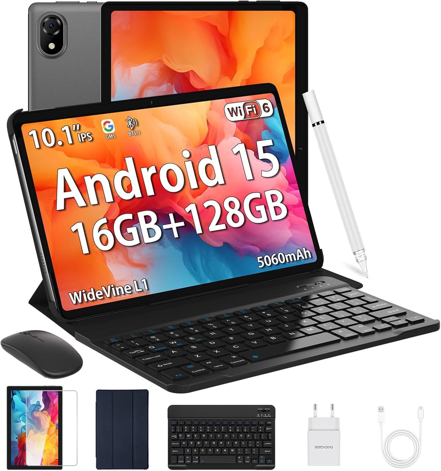 Android 15 Tablet 10 Zoll, 4 GB RAM+128GB ROM(2TB TF) Tablet mit Tastatur, WiFi 6 Gaming Tablets Widevine L1, 8MP+5MP, 5060mAh, Kinder Tablets mit Stift, Tastatur, Maus, Hülle, Schutzfolie
