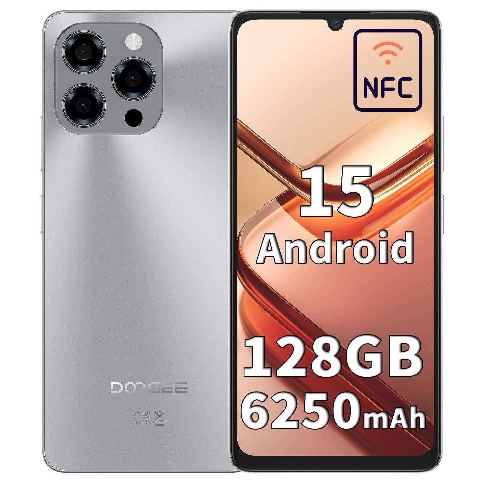 DOOGEE Note 58 Android 15 handy ohne vertrag ist mit einem 6250mAh Großer Akku in einem kompakten Gehäuse ausgestattet, smartphone wiegt nur 199 Gramm und ist nur 8,6 mm dick. Andere elektronische Geräte können über die OTG-Rückladefunktion aufgeladen werden. DOOGEE android 15 günstig handy verfügt über ein Dual SIM Kartensteckplatzdesign und unterstützt 2* SIM Karten oder 1* SIM Karte und 1* TF Karte